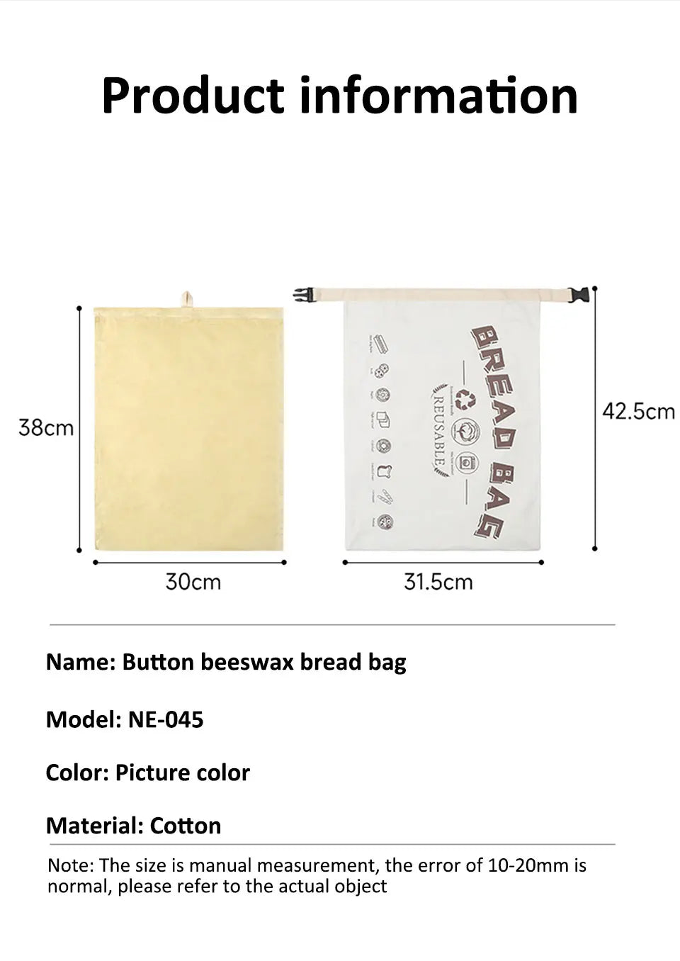 - Material: Hochwertige Baumwolle, Bienenwachsbeschichtung