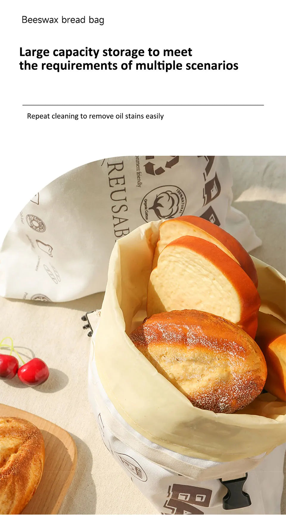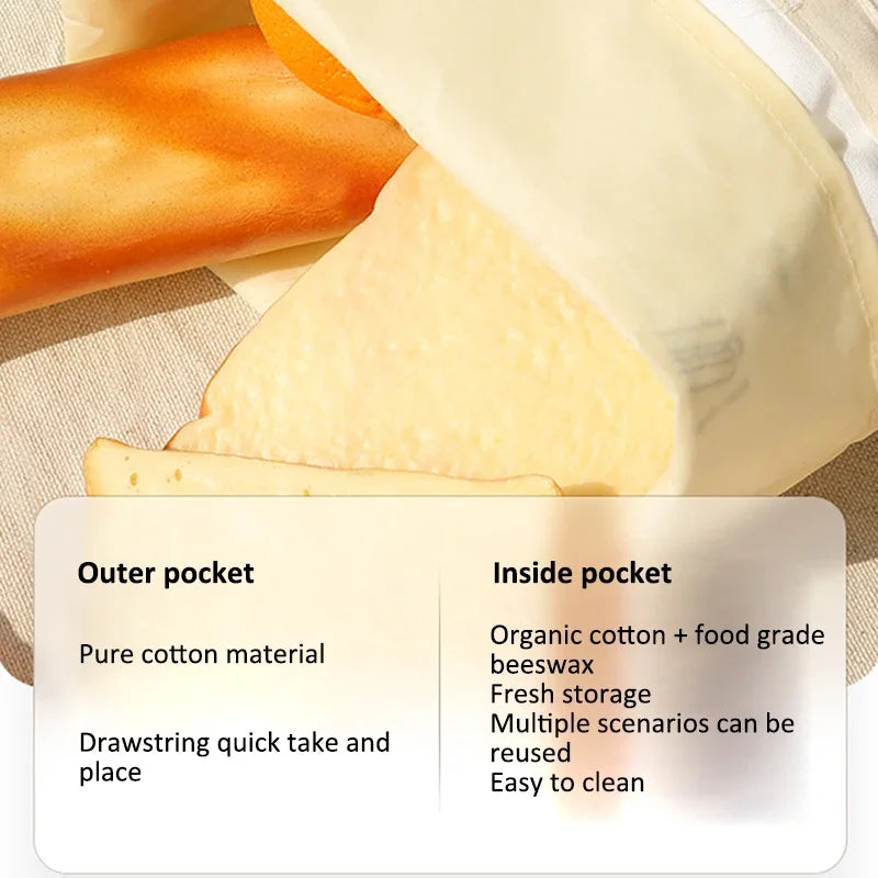 Wiederverwendbare Brotbeutel aus Bienenwachs Baumwolle mit Schnal