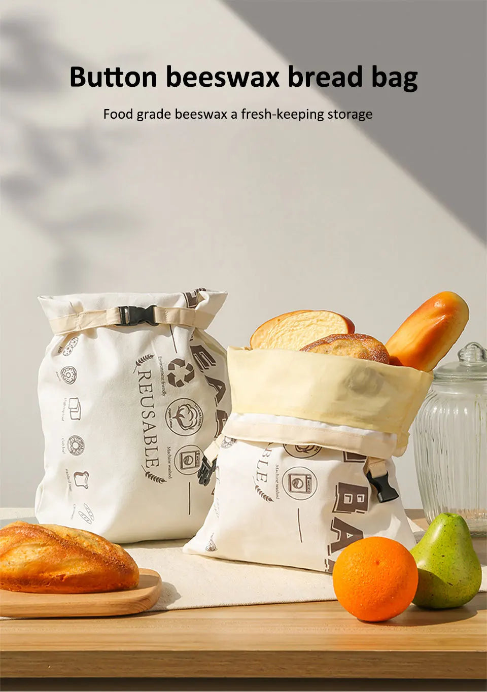 Unsere Brotbeutel sind sorgfältig konzipiert, um Ihre Lebensmittel optimal zu schützen. Das natürliche Bienenwachs bildet eine atmungsaktive Schicht, die Feuchtigkeit reguliert und das Brot vor dem Austrocknen bewahrt, ohne es zu ersticken. Gefertigt aus hochwertiger Baumwolle, sind die Beutel strapazierfähig und langlebig. Ein praktischer abnehmbarer Verschluss sorgt dafür, dass Ihre Backwaren sicher und fest verschlossen sind. Ob für den täglichen Gebrauch zu Hause, den Einkauf beim Bäcker oder den Transport zum Picknick – diese Beutel sind vielseitig einsetzbar und ein echter Gewinn für jede Küche. Sie sind eine wunderbare Alternative zu Einwegverpackungen und helfen Ihnen, Ihren ökologischen Fußabdruck zu reduzieren.
