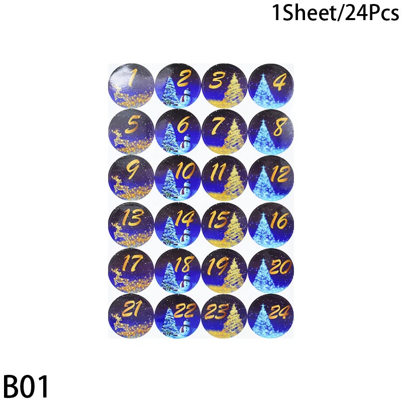 Weihnachts-Adventskalender Aufkleber 1/3/5 Blatt für Geschenkverpackung