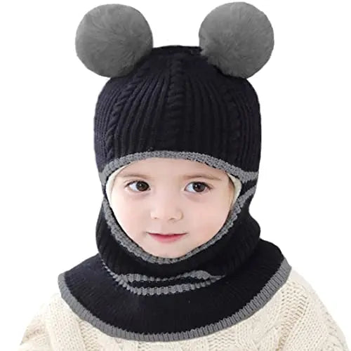 Baby Kinder Strickmütze mit Bär Ohren Warm für Herbst und Winter 1-4 Jahre
