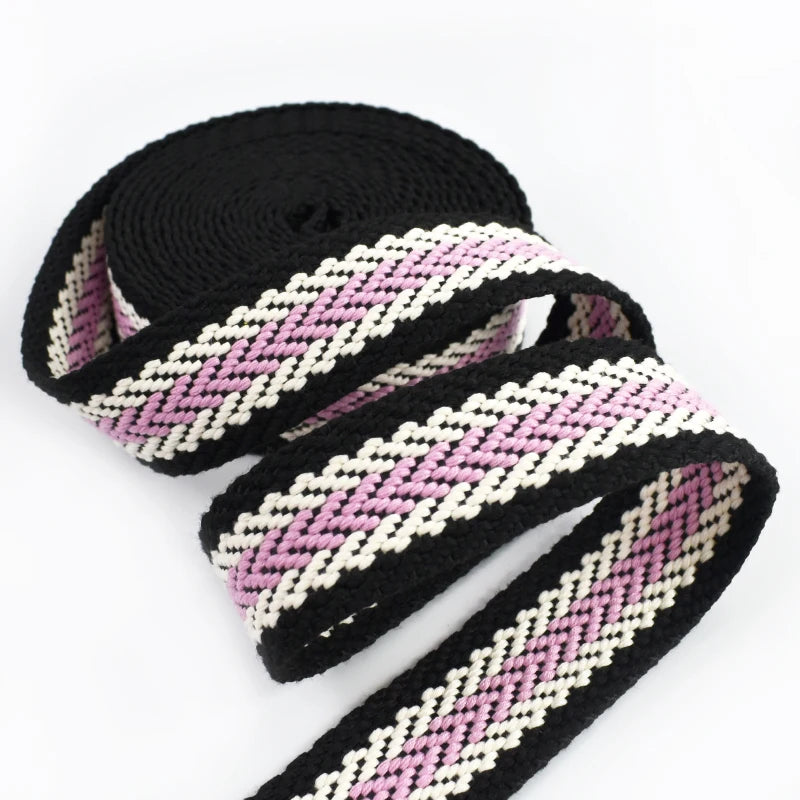 Entdecken Sie dieses hochwertige, farbig gestreifte Baumwollgurtband mit 38 mm Breite und 2,5 mm Dicke. Ideal für vielfältige Näh- und DIY-Projekte, wie Kleidung, Gürteltaschen oder Schultergurte.