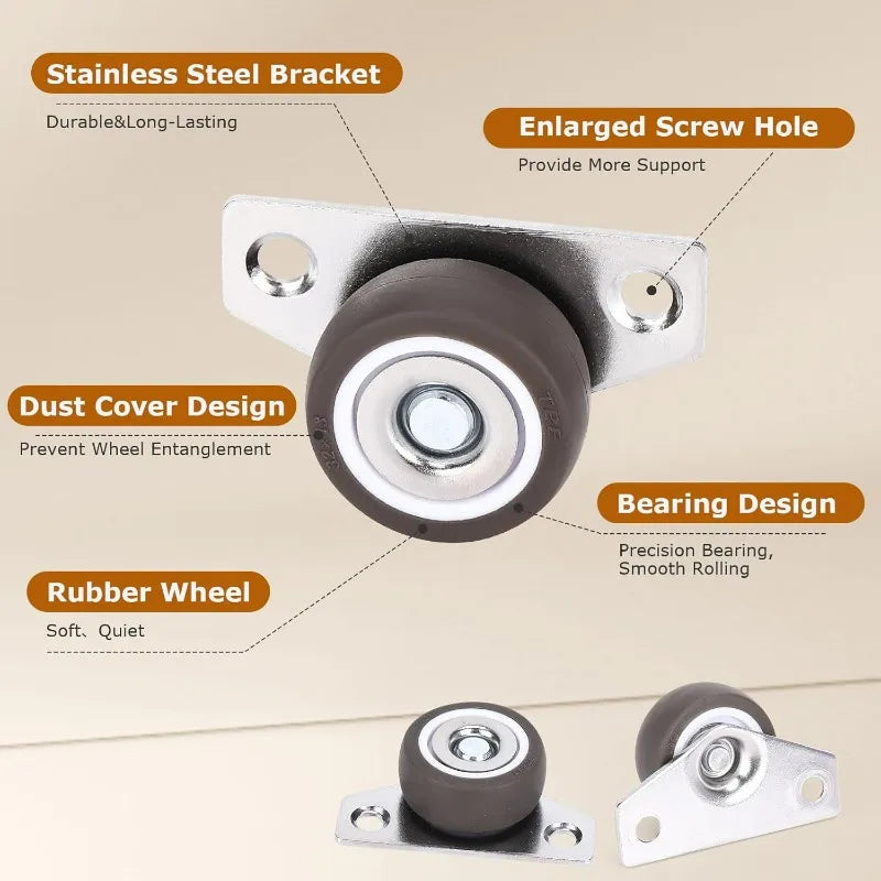 Diese Möbel-Fußrolle besteht aus robustem TPE-Gummirad und verzinktem Eisenblech, wodurch sie verschleißfest, rostfrei und besonders widerstandsfähig ist. Mit kompakten Maßen von 5,3 x 3,3 x 2 cm und der optimierten Installationshöhe von 1-18 mm eignet sich die Rolle ideal für den Einsatz an Schrankböden, Schranktüren, Esstischen und weiteren Möbelstücken.