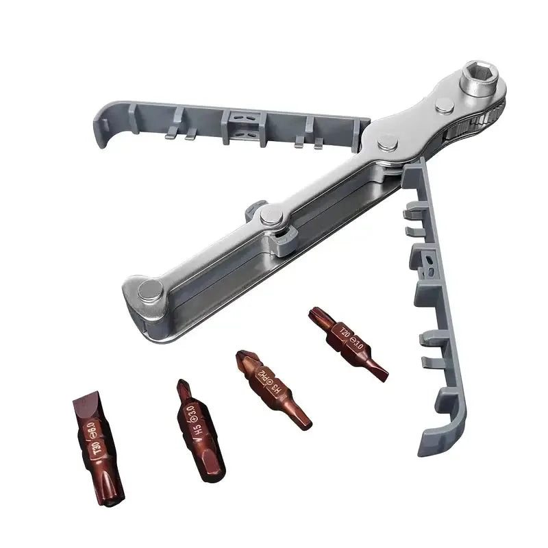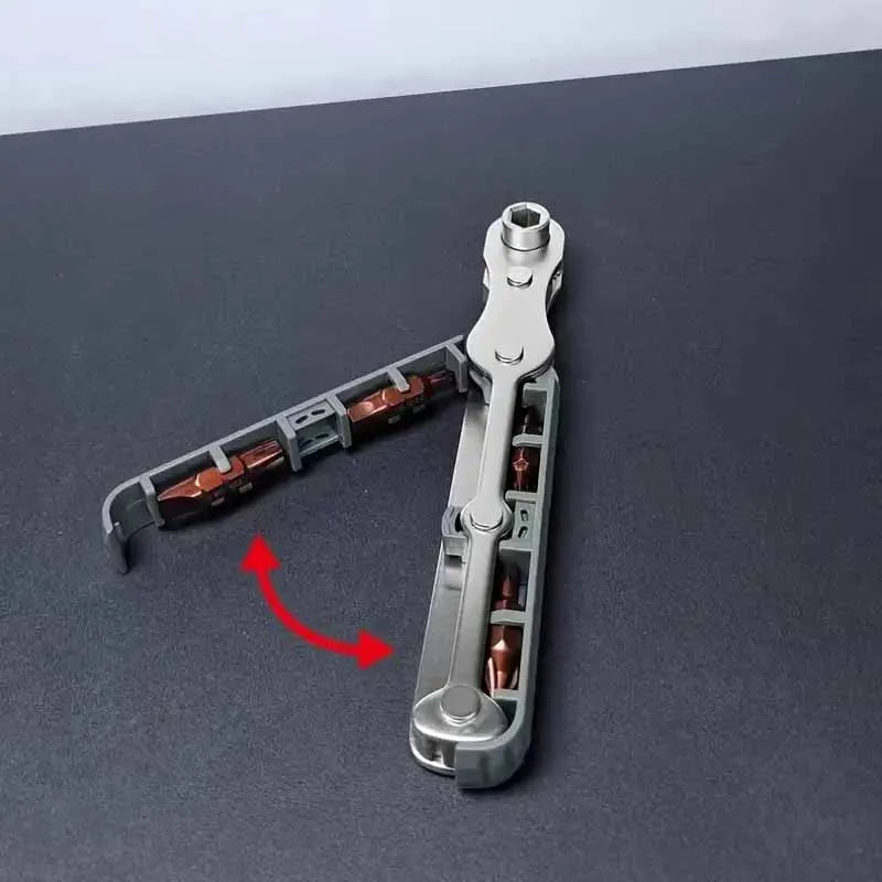 - Multifunktions-Winkelschlüssel: Bietet zusätzliche Flexibilität und Anpassungsmöglichkeiten für diverse Schraubaufgaben.