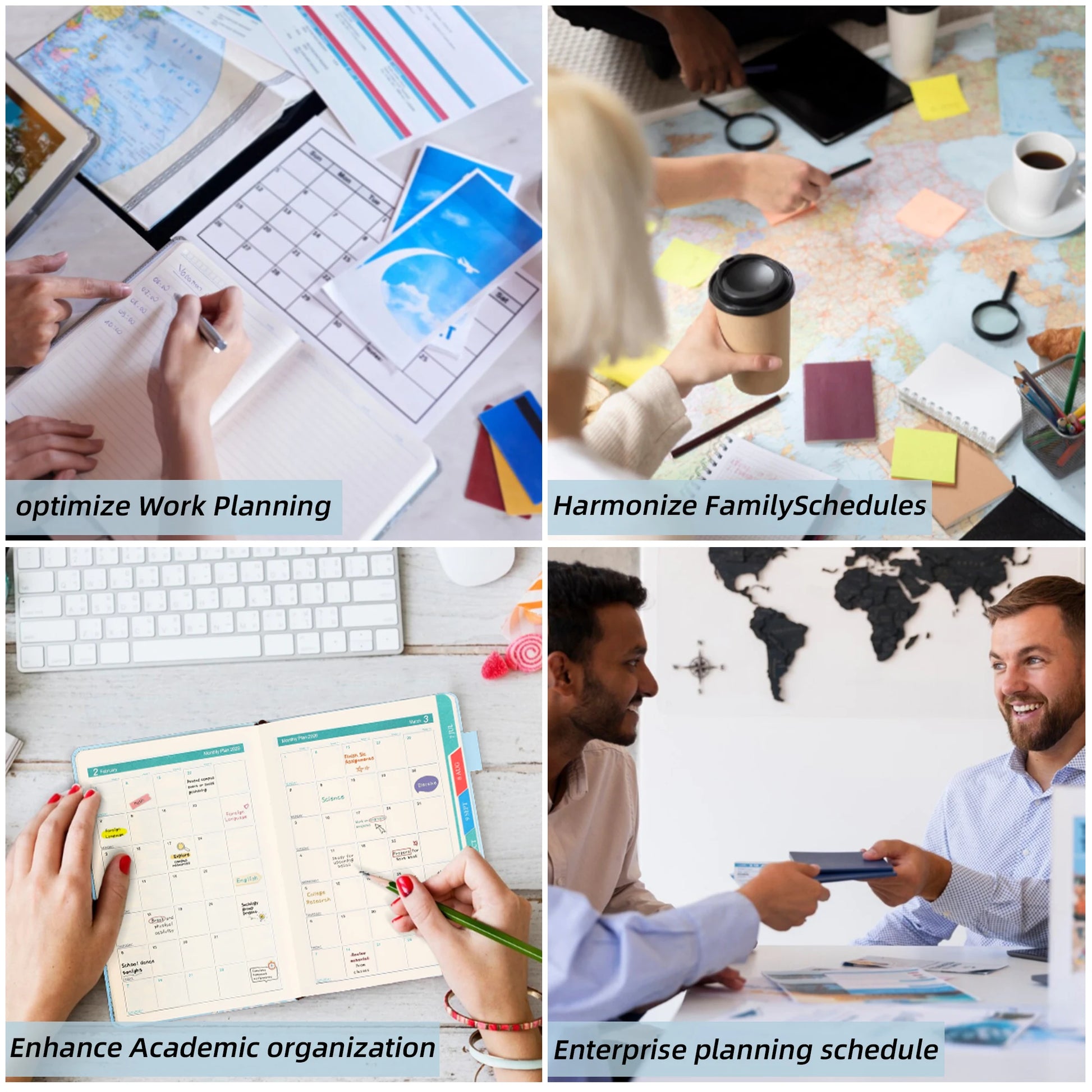 - Strukturierte Seiten für die tägliche Aufgabenplanung und Terminübersicht.
