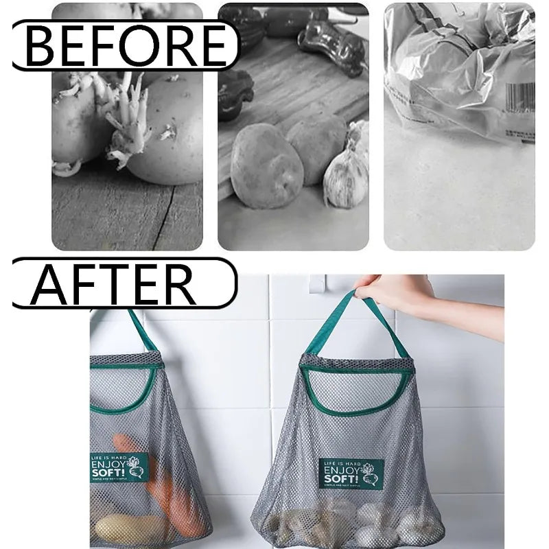 Dieser atmungsaktive, hängende Netzbeutel aus stabilem Vliesstoff sorgt für eine optimale Lagerung von Kartoffeln, Zwiebeln und Knoblauch. Du sparst wertvollen Platz und behältst stets den Überblick über deine Vorräte.