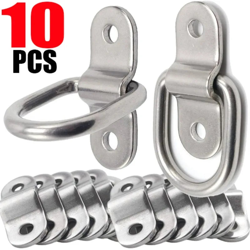 Dieses Set enthält 1 oder 10 D-Ringe aus robustem Edelstahl, ideal zum Befestigen von Ankern, Fracht und anderen Lasten auf Autos, Booten, Anhängern, Wohnmobilen und Vans. Die korrosionsbeständigen Zurringe bieten zuverlässigen Halt auch unter anspruchsvollen Bedingungen.
