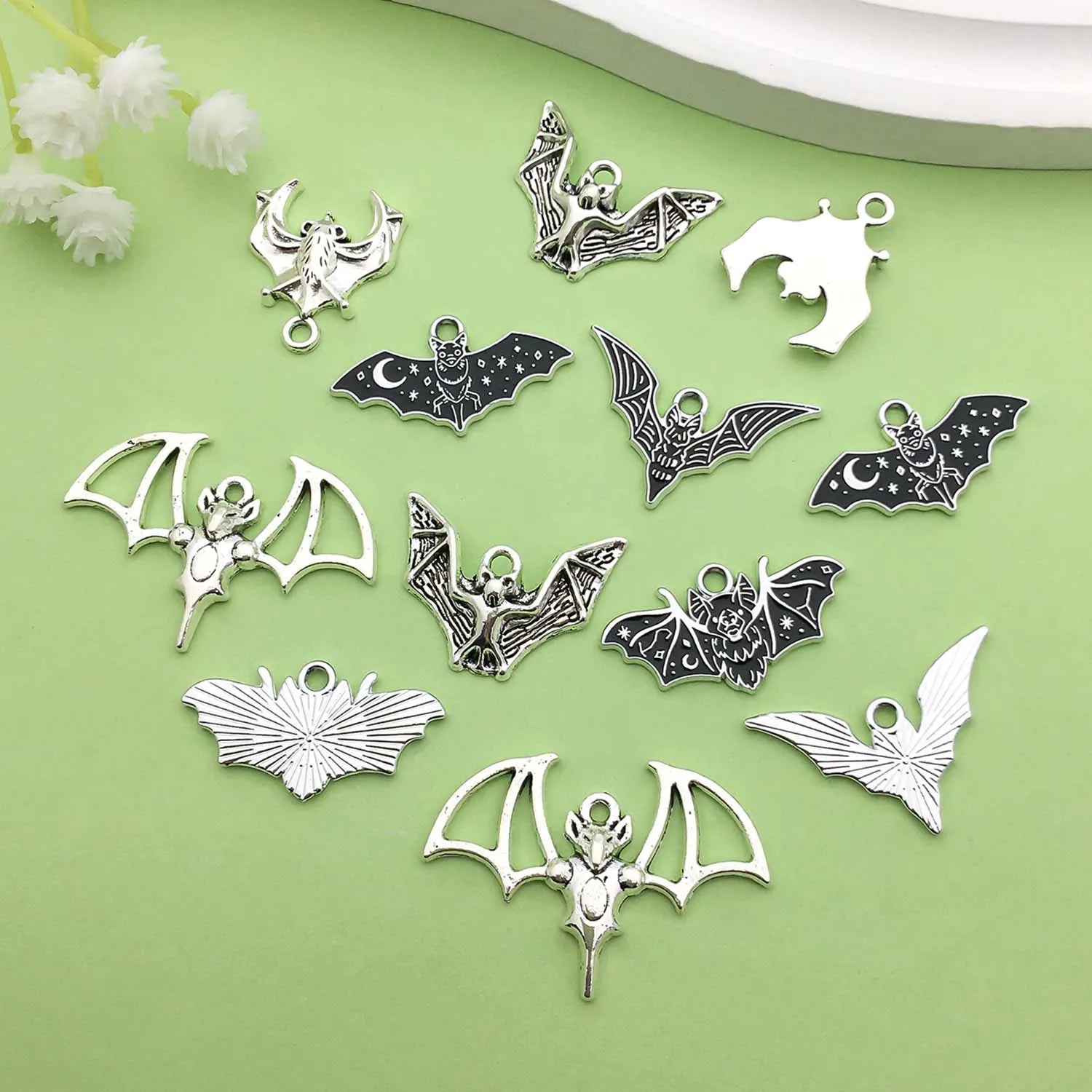 10 12er Set Gothic Fledermaus Charms aus Metall für DIY Schmuck