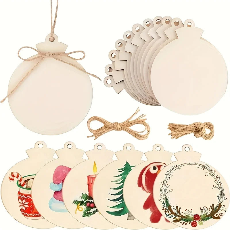 Dieses Set enthält 10 oder 20 runde Holzanhänger, ideal für DIY-Malerei, Weihnachtsdekoration und vielseitige Bastelprojekte. Die natürlichen Holztafeln sind perfekt geeignet für personalisierte Kunstwerke und Urlaubszubehör.