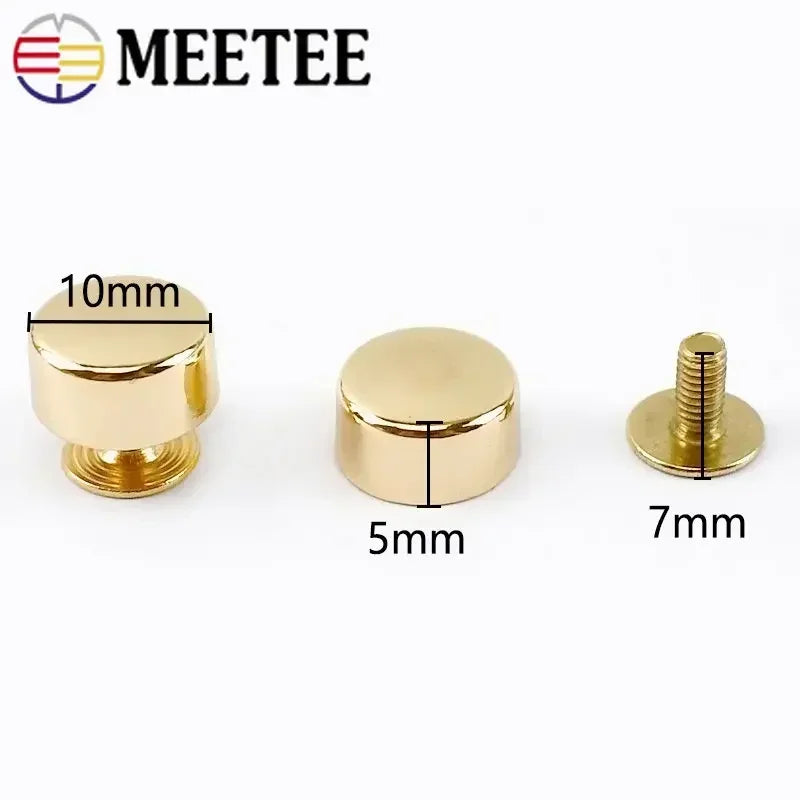 Dieses Set enthält 10 bis 50 Stück runde Zinklegierungs-Nieten und Schrauben, ideal für die Dekoration und Befestigung bei Taschen, Gürteln, Kleidern und Schuhen. Die überzogenen Metallteile eignen sich perfekt für DIY-Projekte und Lederhandwerk, um langlebige und stilvolle Akzente zu setzen.