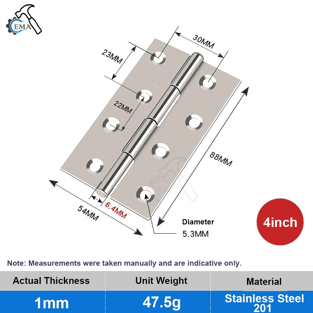 Edelstahl-Flachscharnier 1,5-4 Zoll für Holztüren und Schränke, 10er Set
