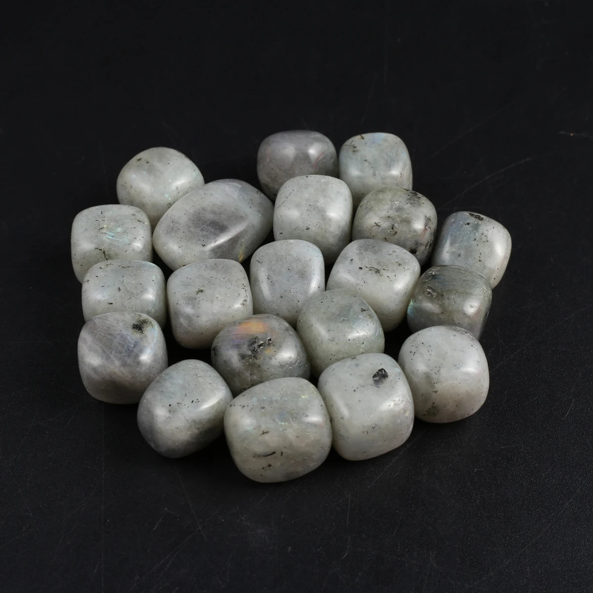 - Glatt polierte Oberfläche: Betont die natürlichen Farben und Muster der Edelsteine.