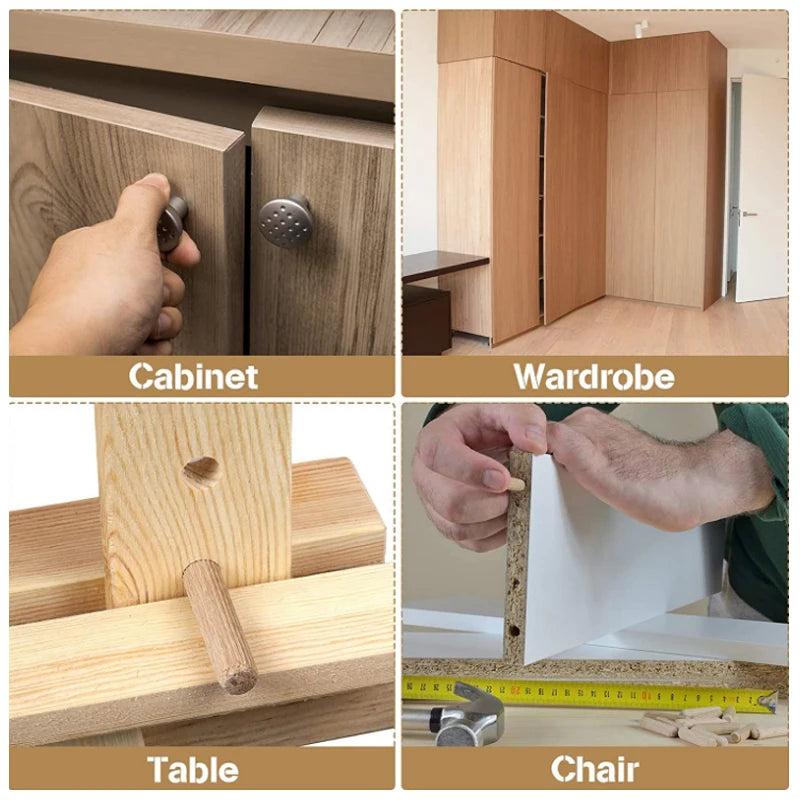 Verwirklichen Sie Ihre Möbelprojekte und Reparaturen mit diesen zuverlässigen Holzdübeln. Dieses Set bietet Ihnen die perfekte Lösung für stabile und unsichtbare Verbindungen in Schränken, Schubladen und anderen Holzkonstruktionen. Ideal für Heimwerker und Profis, die Wert auf Präzision und Langlebigkeit legen.