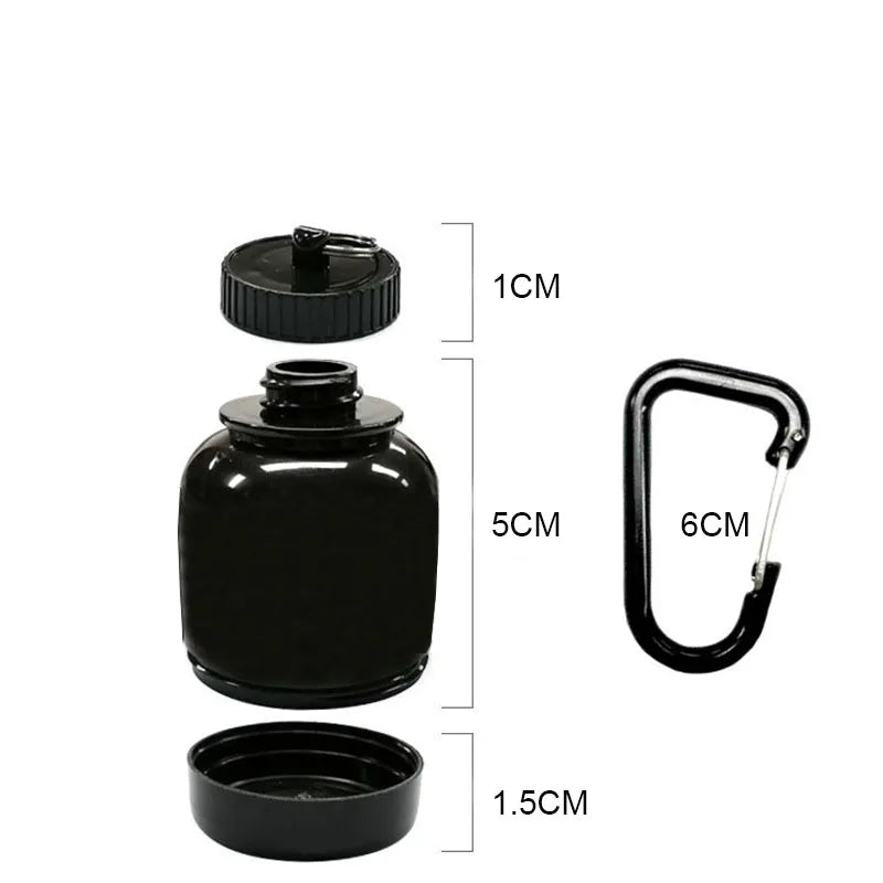 Praktische 100ml Mini Pulver-Flasche mit Karabiner – leicht - ideal für Outdoor