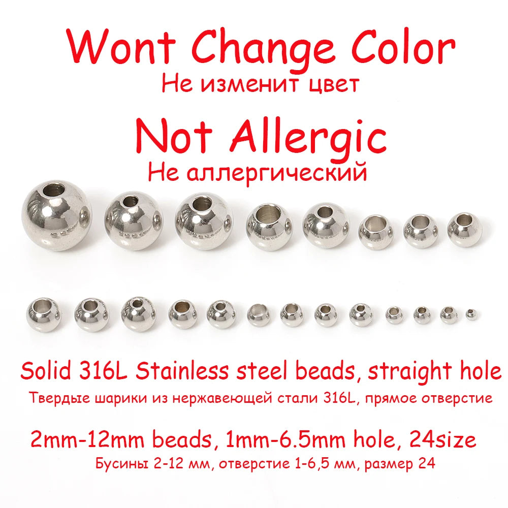 100x Edelstahl Großloch Spacer Perlen für DIY Schmuck 2-12mm