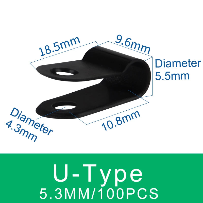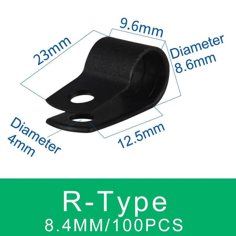 100 Kunststoff-Kabelklemmen R-Typ schwarz für sicheres Drahtmanagement