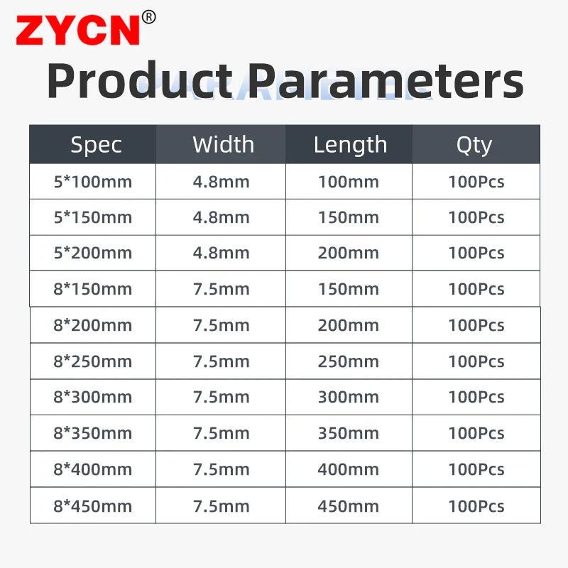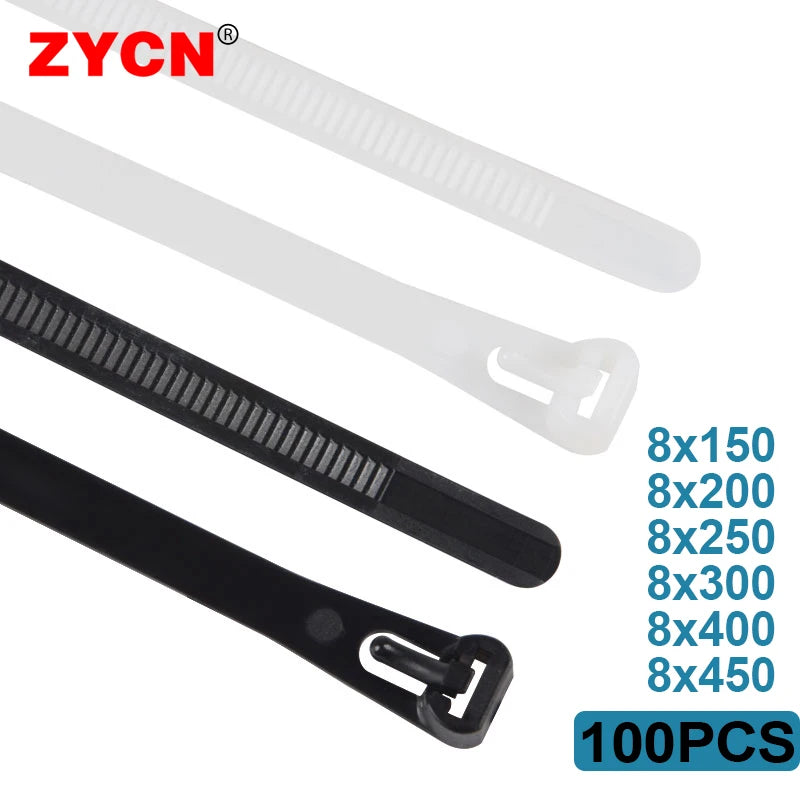 100x wiederverwendbare Nylon Kabelbinder schwarz 8x150-450 mm lösbar