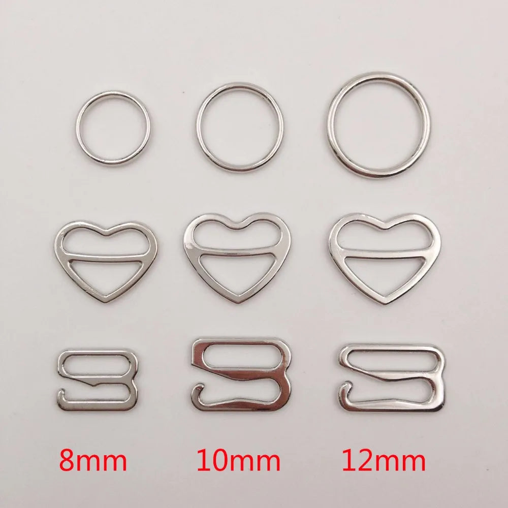 Dieses Set umfasst 100 BH-Ringe aus Zinklegierung, erhältlich in den Größen 8 mm, 10 mm und 12 mm. Die Ringe sind herzförmig und eignen sich ideal als Einsteller und Haken für Kleidungsstücke, um Komfort und Halt zu gewährleisten.