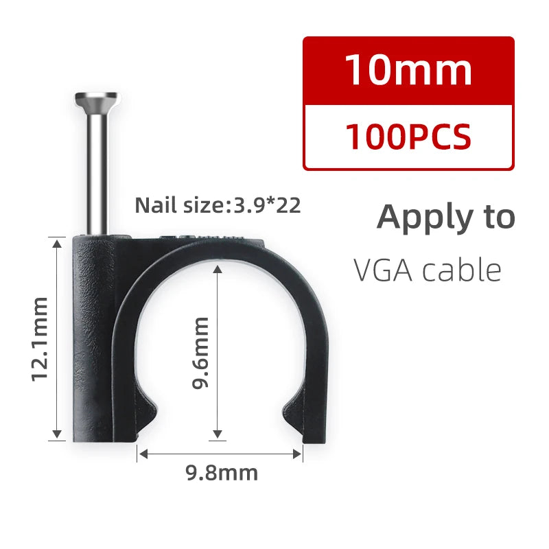 100 Stück PE-Kunststoff-Rundkabel-Clip in 4/6/10/12/14 mm mit Kohlenstoffstahl-Nagelhalter