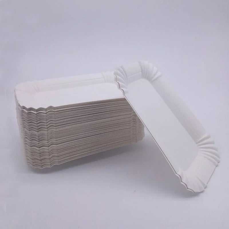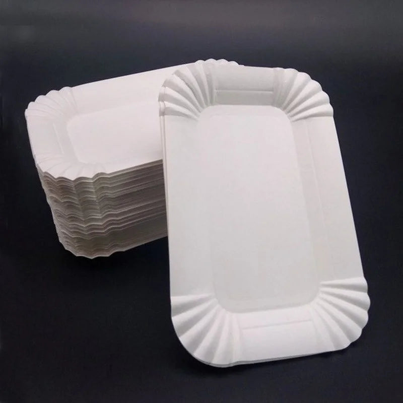 100 Einweg Pappteller rechteckig weiß für Kuchen und Abendessen