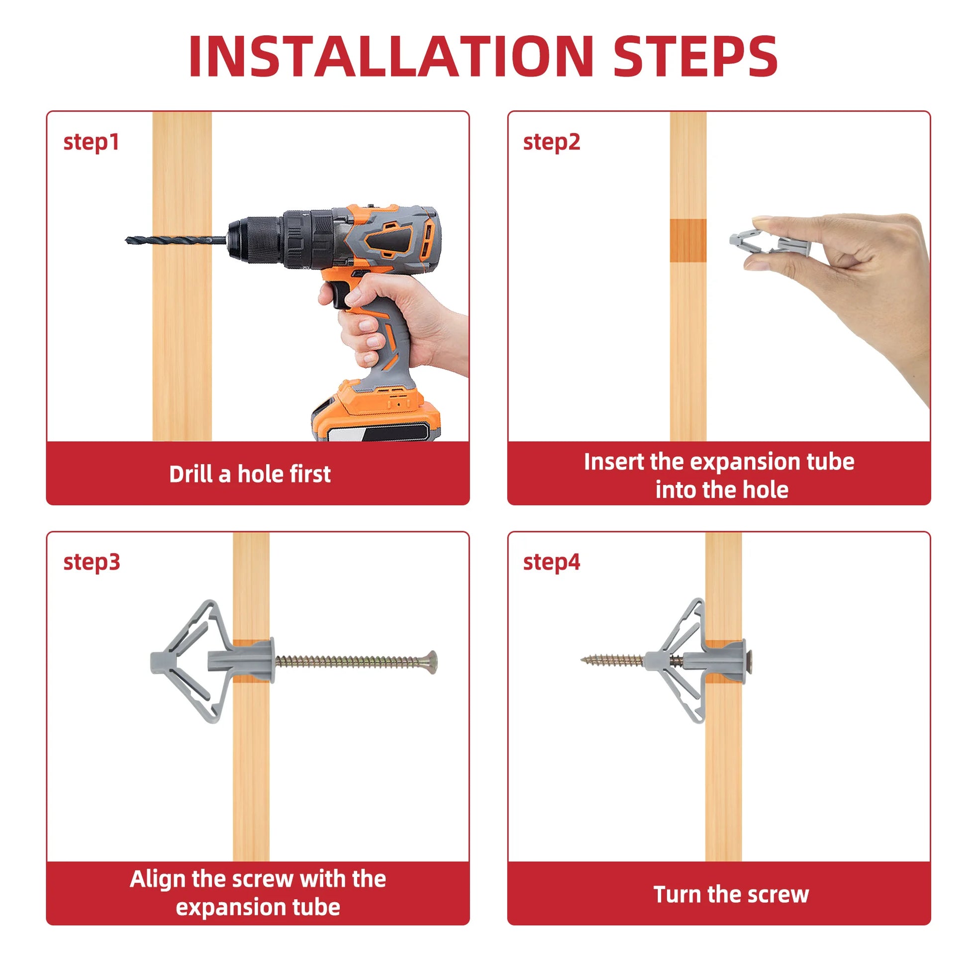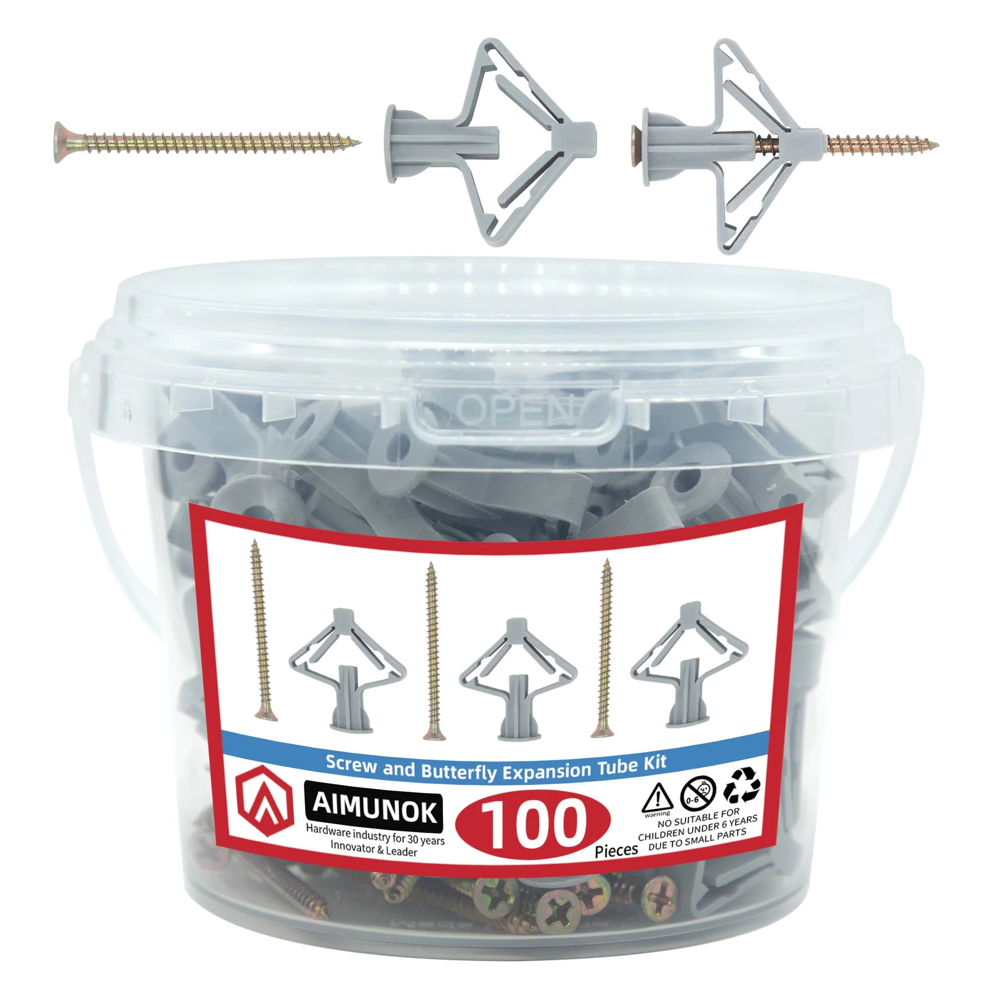 Dieses umfangreiche Set beinhaltet 100 Kunststoff-Trockenbauanker inklusive Schmetterlings-Expansionsrohr und Schrauben in der Größe M8. Ideal für sichere Befestigungen in Gipskartonwänden und Hohlräumen, sorgt es für festen Halt bei verschiedenen Heimwerkerprojekten.