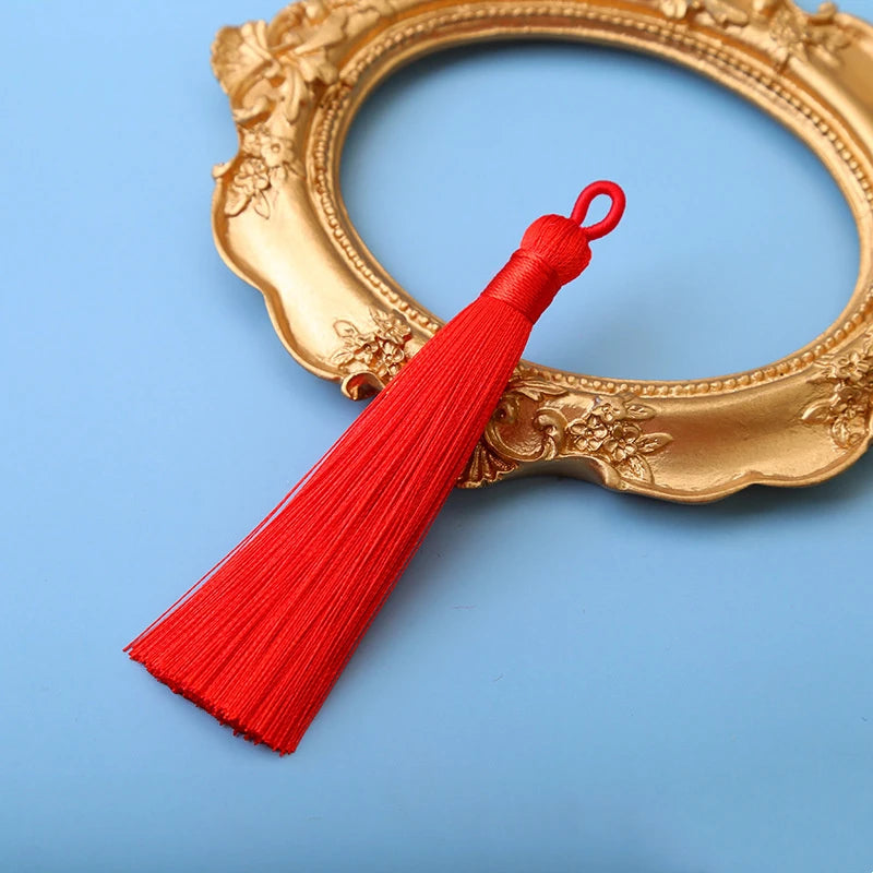 Dieses Set enthält 10 dekorative Seiden-Quasten mit einer Länge von 8 cm, ideal zum Verzieren von Ohrringen, Lesezeichen oder anderen Handwerksarbeiten.