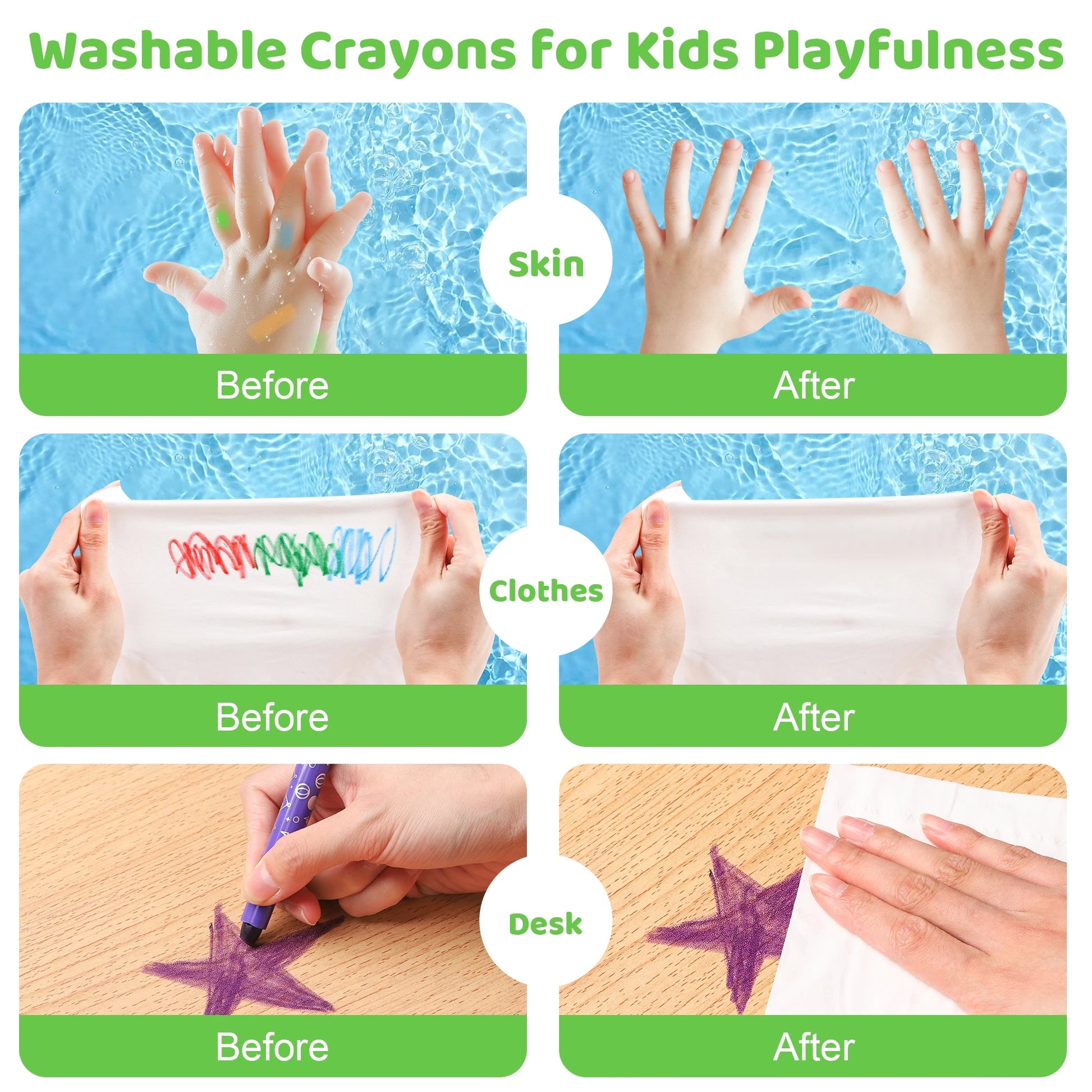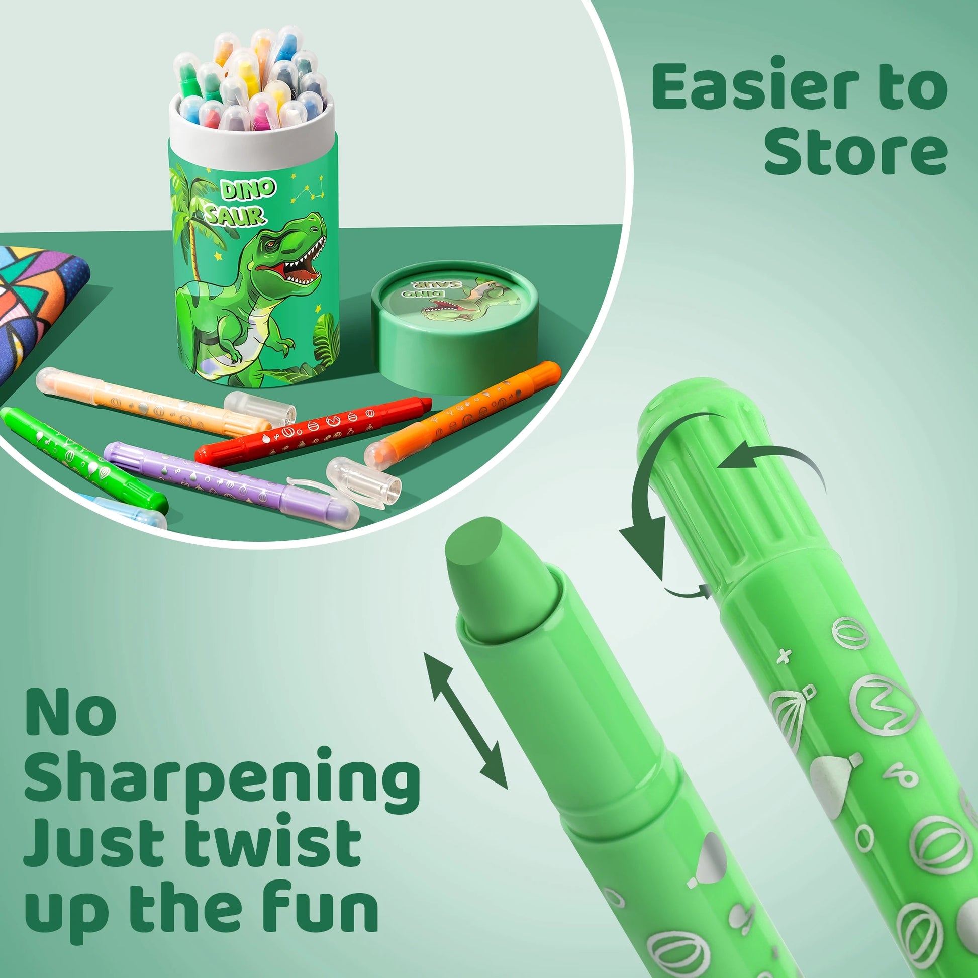 Dieses bunte Wachsstift-Set bietet 12 oder 24 Farben mit Dinosaurier-Motiven, ideal für Kleinkinder und Kinder. Die Buntstifte sind waschbar und löschbar, schnell trocknend und vollkommen frei von schädlichen Chemikalien. Perfekt als kreatives Geschenk für junge Künstler.