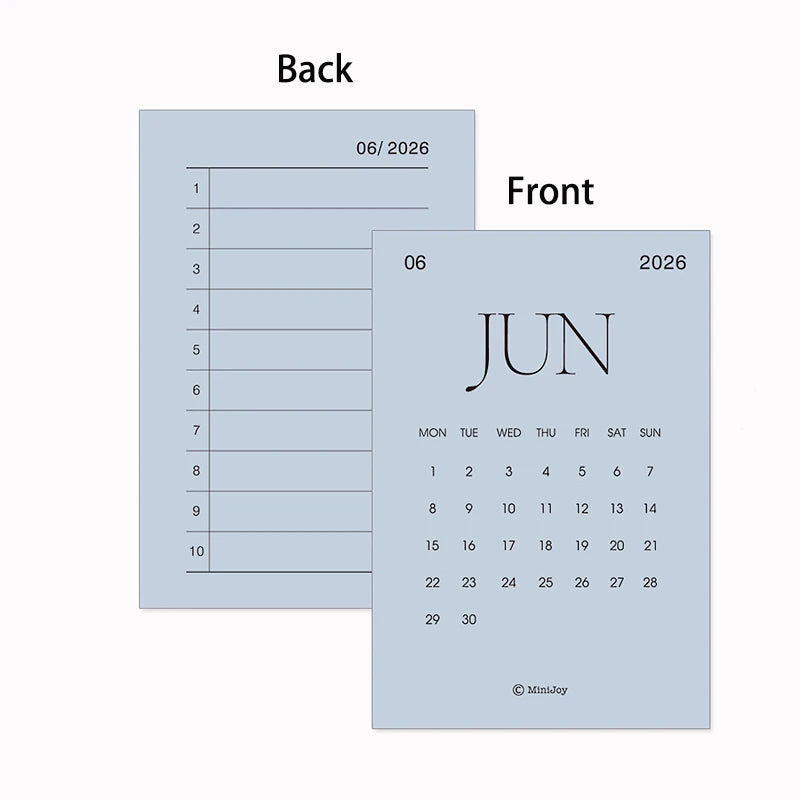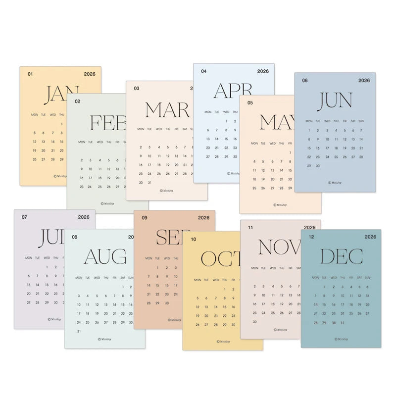 Diese Kalenderkarten für 2026 sind ideal als Zubehör für Notizbücher, Planer und Tagebücher. Erhältlich in den Größen A5, A6 und A7, eignen sich die losen Blätter optimal für die flexible Planung und Organisation im Büro oder privat.