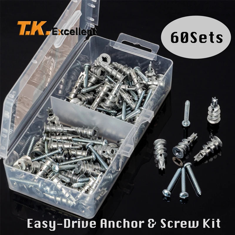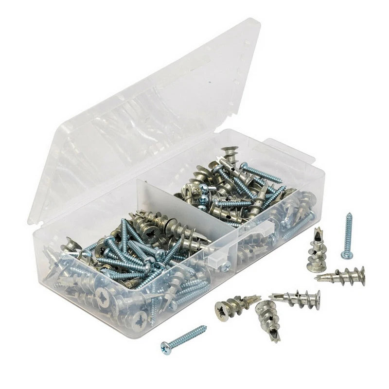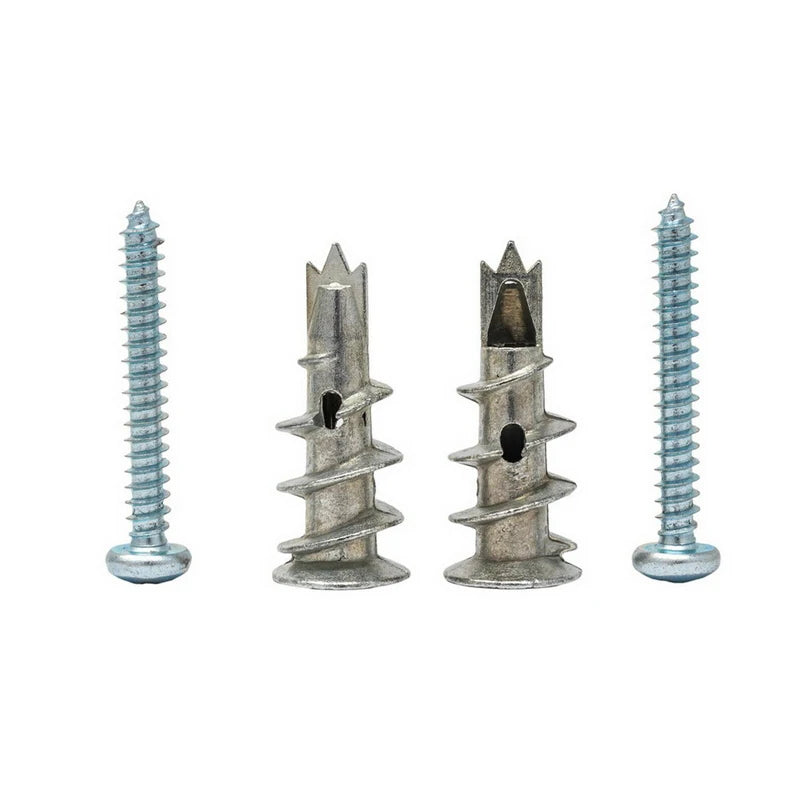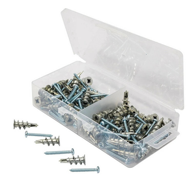 Dieses Set enthält 120 Stück selbstbohrende Wandanker aus Zinklegierung, ideal für Gipskarton- und Hohlwandmontagen. Die robusten Trockenbauanker bieten eine Tragfähigkeit von bis zu 50 lbs und werden inklusive passender Blechschrauben geliefert.