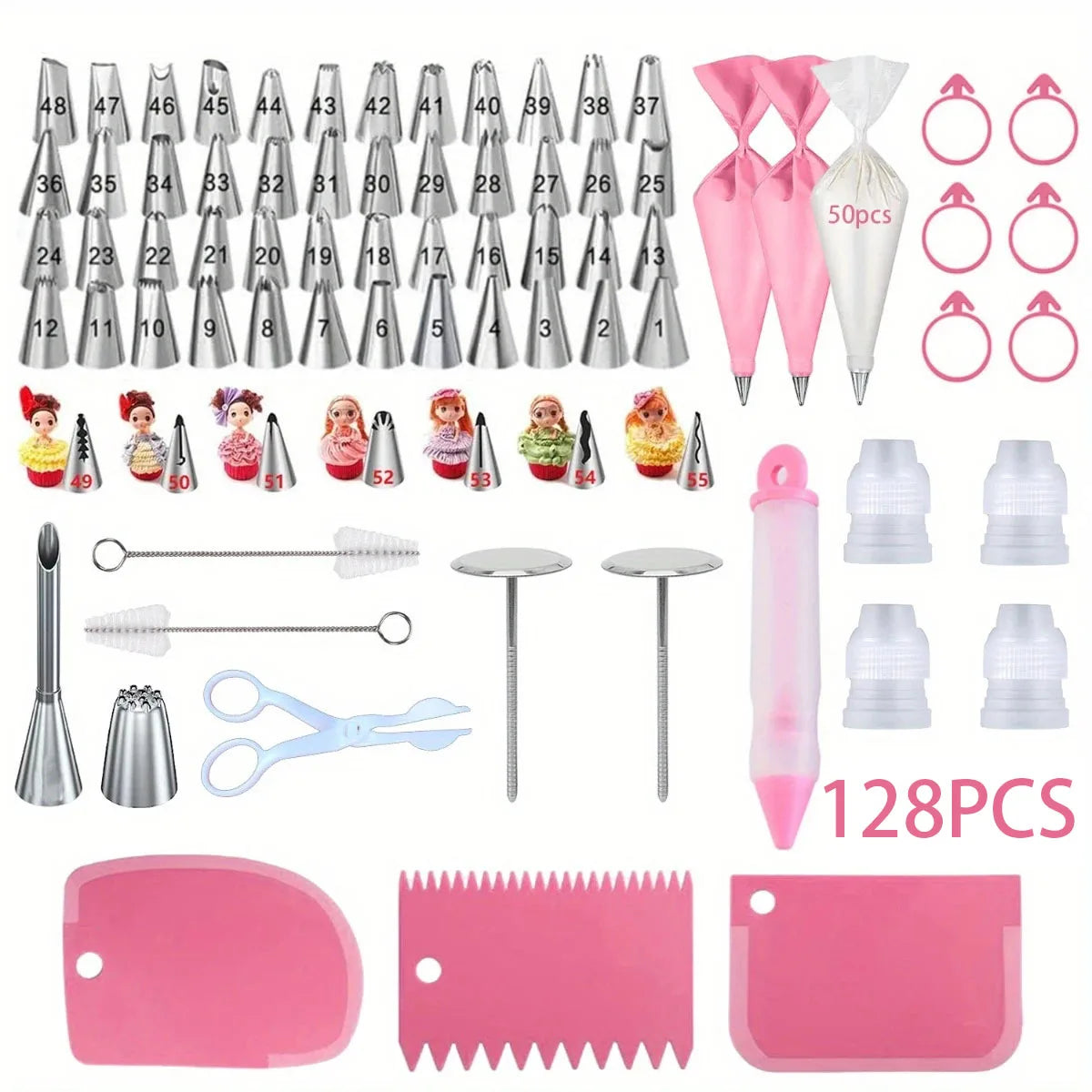 128-teiliges Kuchen Dekorationsset mit 57 Spritztüllen und Werkzeugen