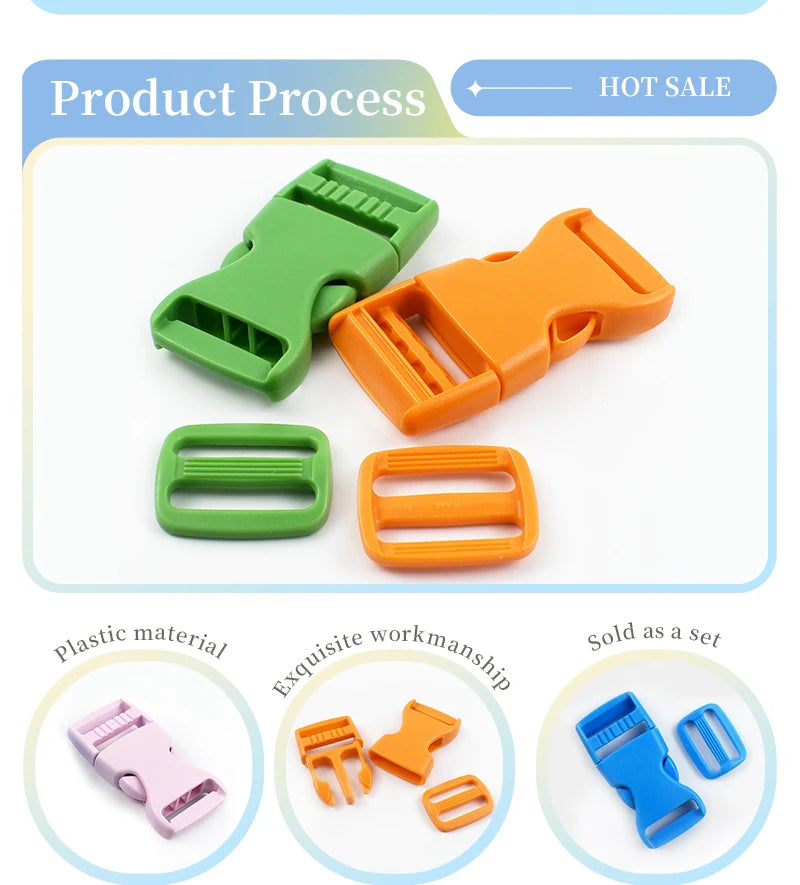 Die Schnallen bestehen aus umweltfreundlichem, nickelfreiem Kunststoff, der sowohl robust als auch hautverträglich ist. Keine Verwendung von schädlichen Chemikalien oder gefährlichen Materialien. Geeignet für verschiedene textile und Outdoor-Anwendungen, ohne Materialermüdung bei normaler Nutzung.
