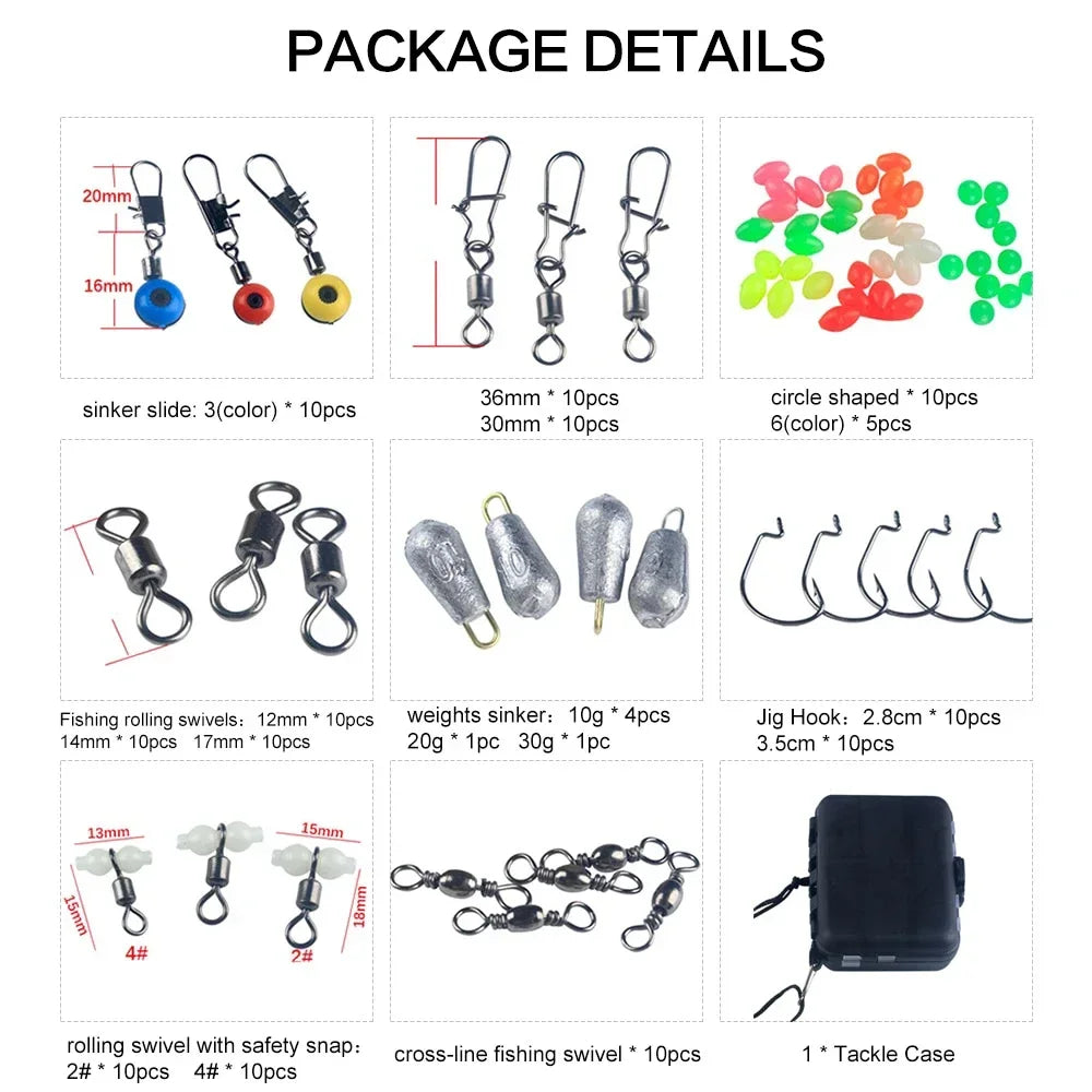 - Umfassendes 177-teiliges Set: Dieses umfangreiche Zubehörpaket bietet eine breite Auswahl an essentiellen Komponenten für verschiedene Angeltechniken und Situationen.