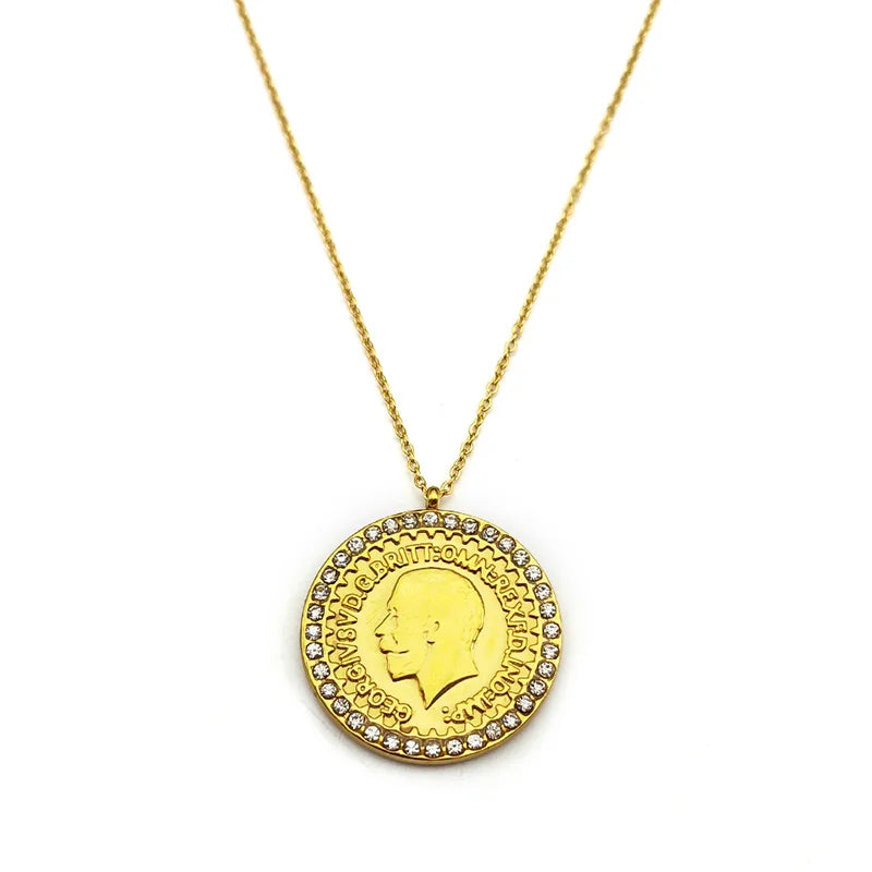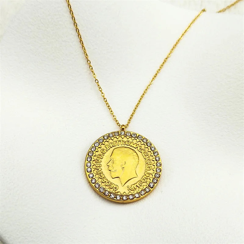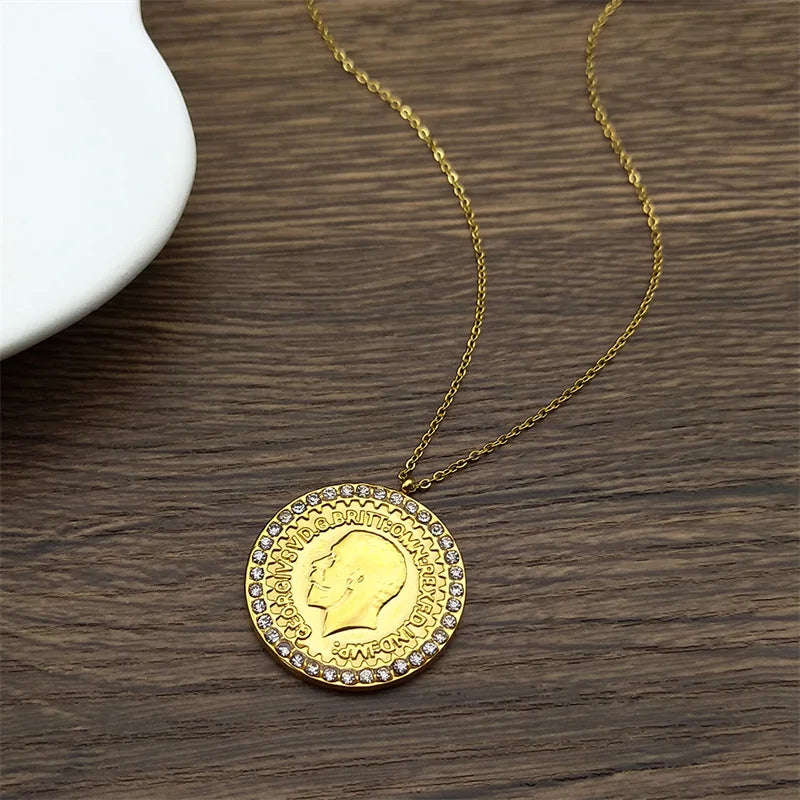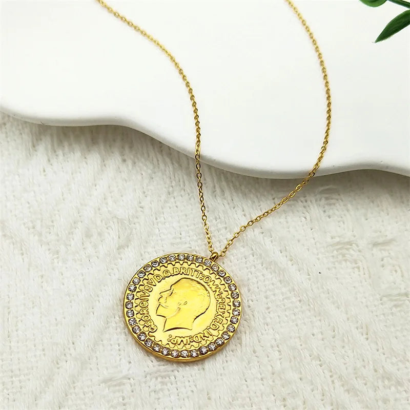 Elegante Edelstahl Halskette mit Rundem Münzanhänger in Gold