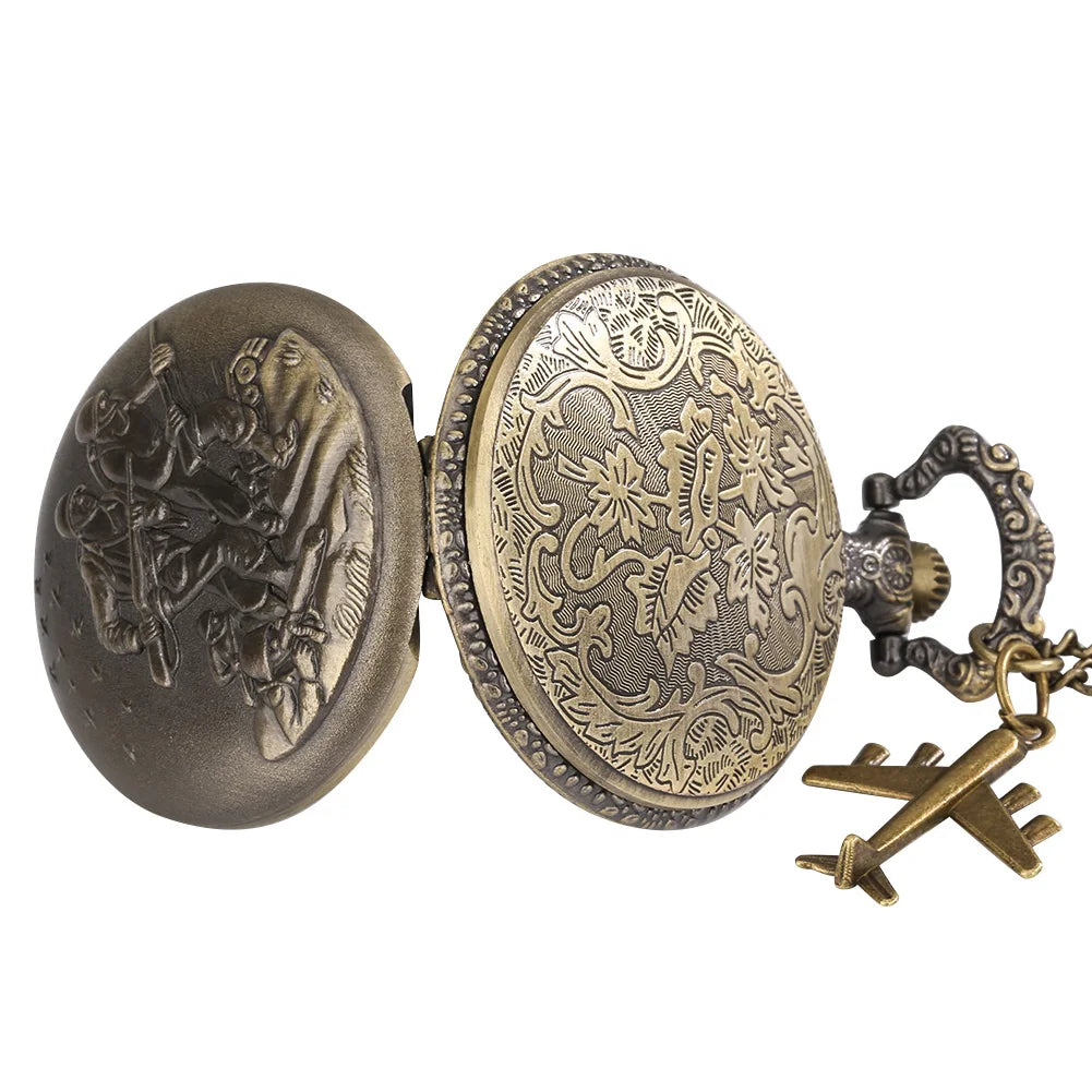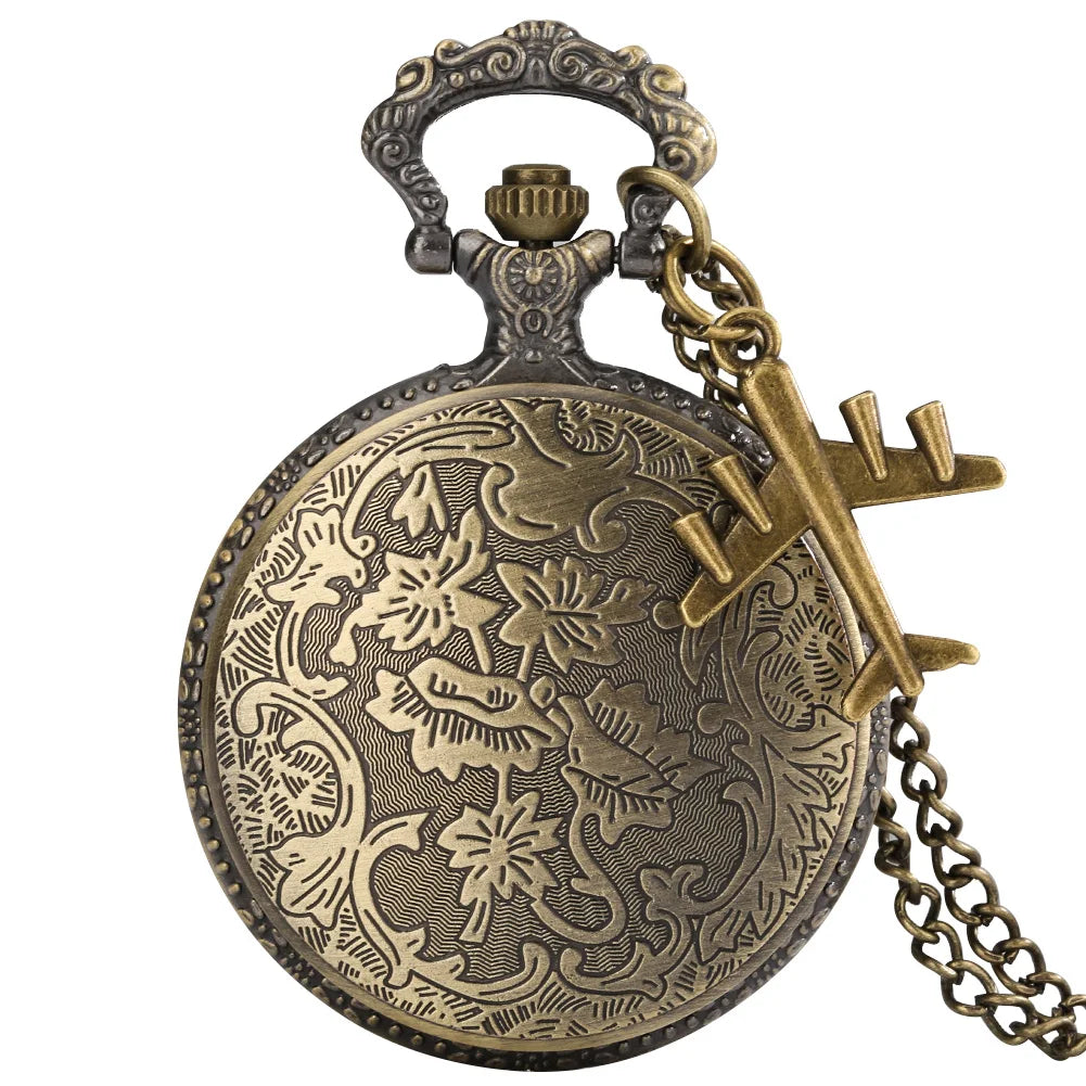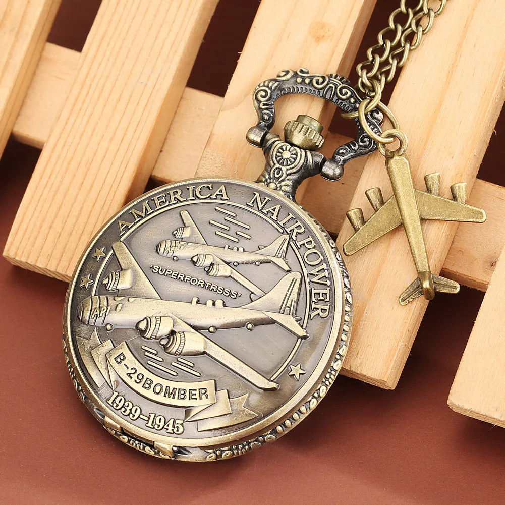 Retro Quarz Taschenuhr mit Flugzeug Anhänger Halskette