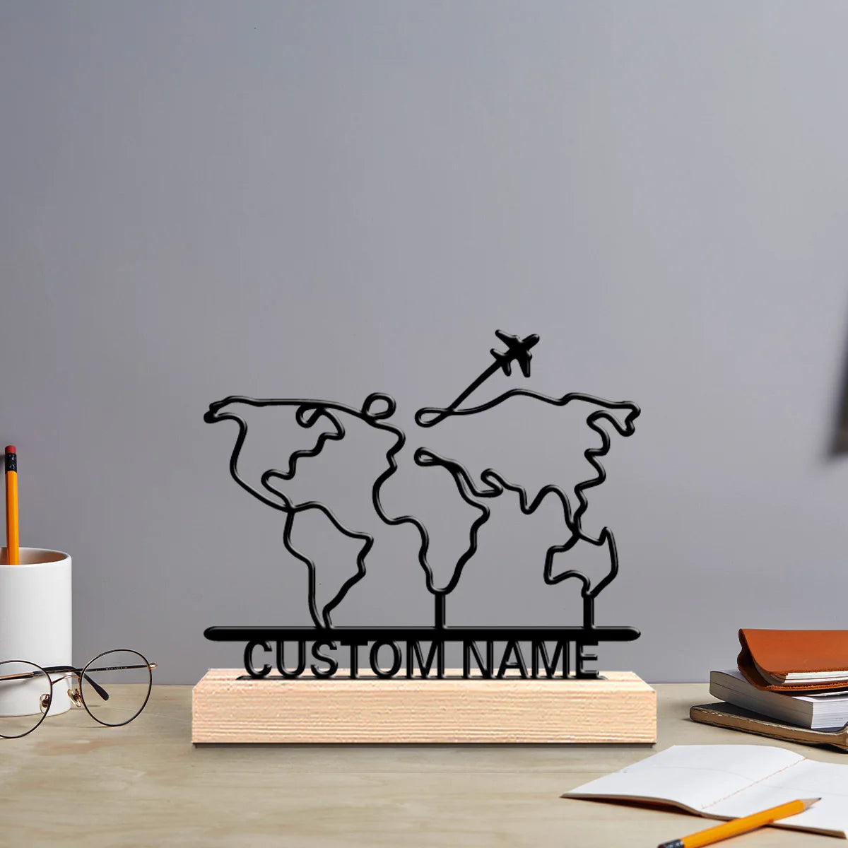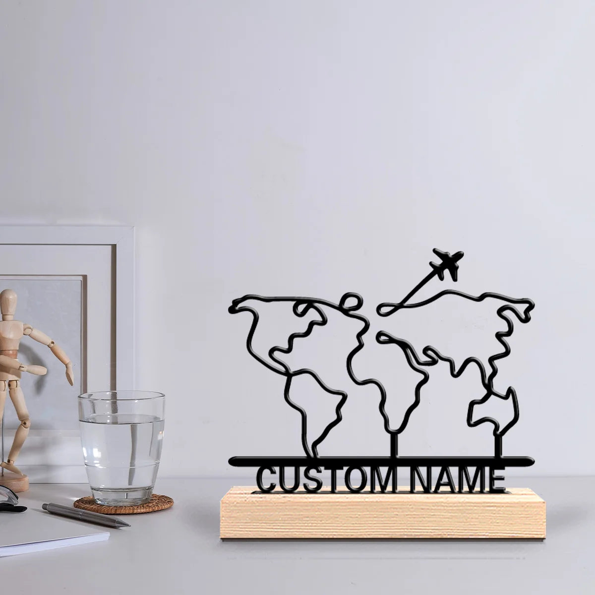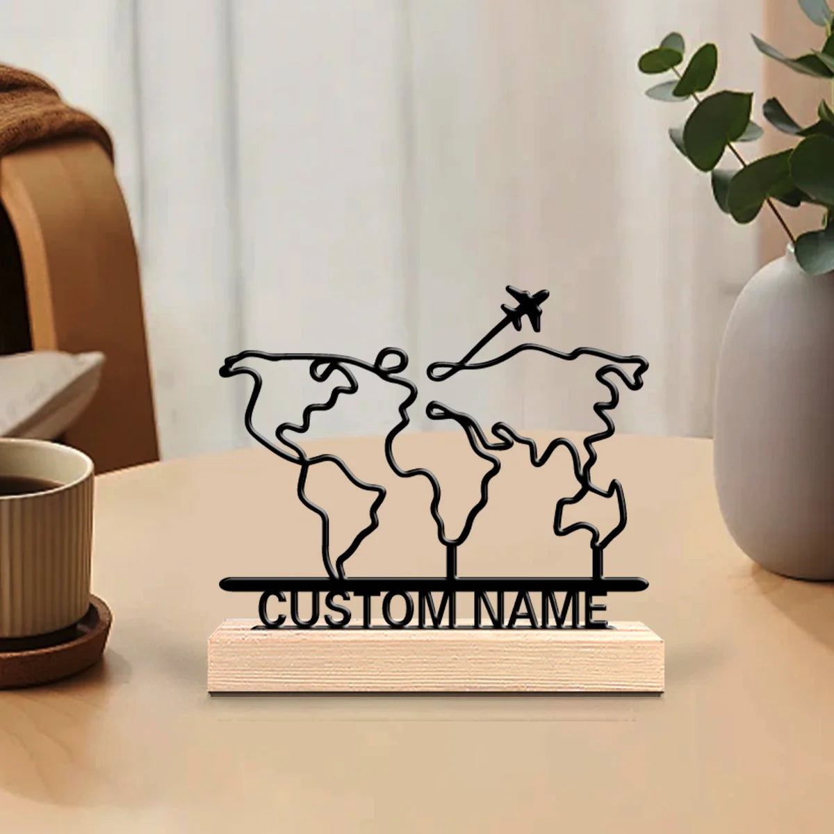 Mit diesem runden Holzornament holen Sie sich ein faszinierendes Detail ins Haus, das durch seine natürliche Materialität und das ansprechende Weltkartenmotiv überzeugt. Es bringt Atmosphäre auf jeden Tisch und ist ein Blickfang für jeden Wohnraum.