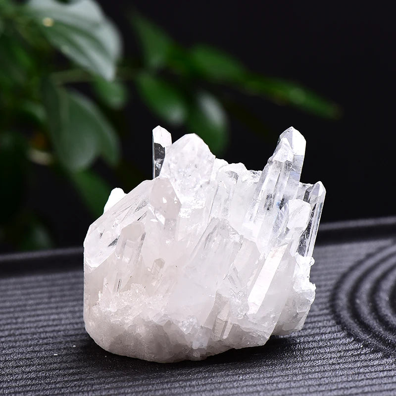 - Weiße Quarz-Cluster: Bekannt für seine reinigenden Eigenschaften, unterstützt er ein klares und harmonisches Raumklima.