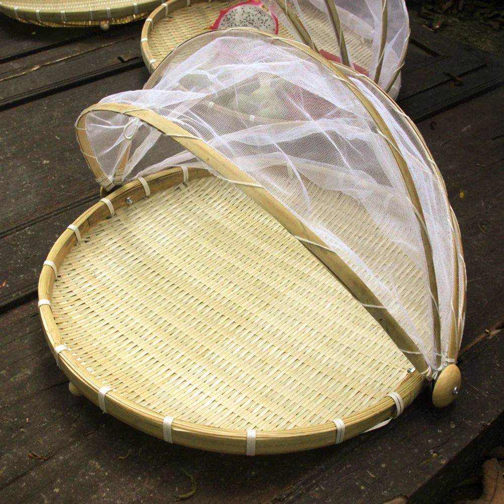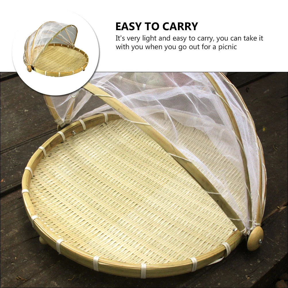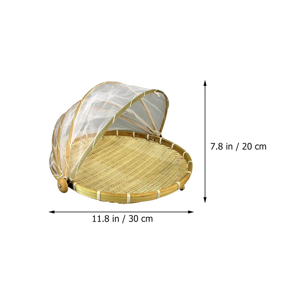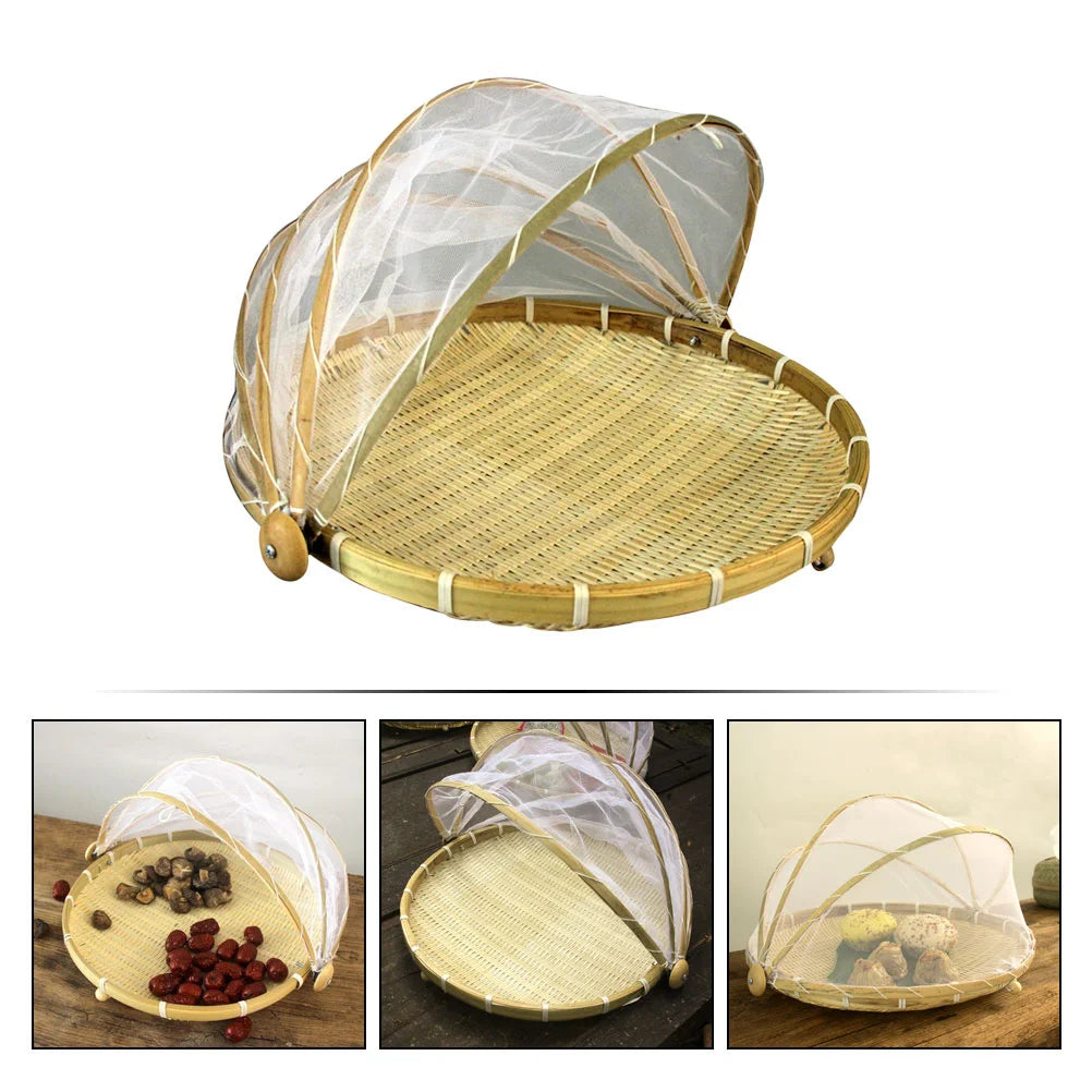 Runder Handgewebter Bambus Korb mit Insektenschutz für Lebensmittel
