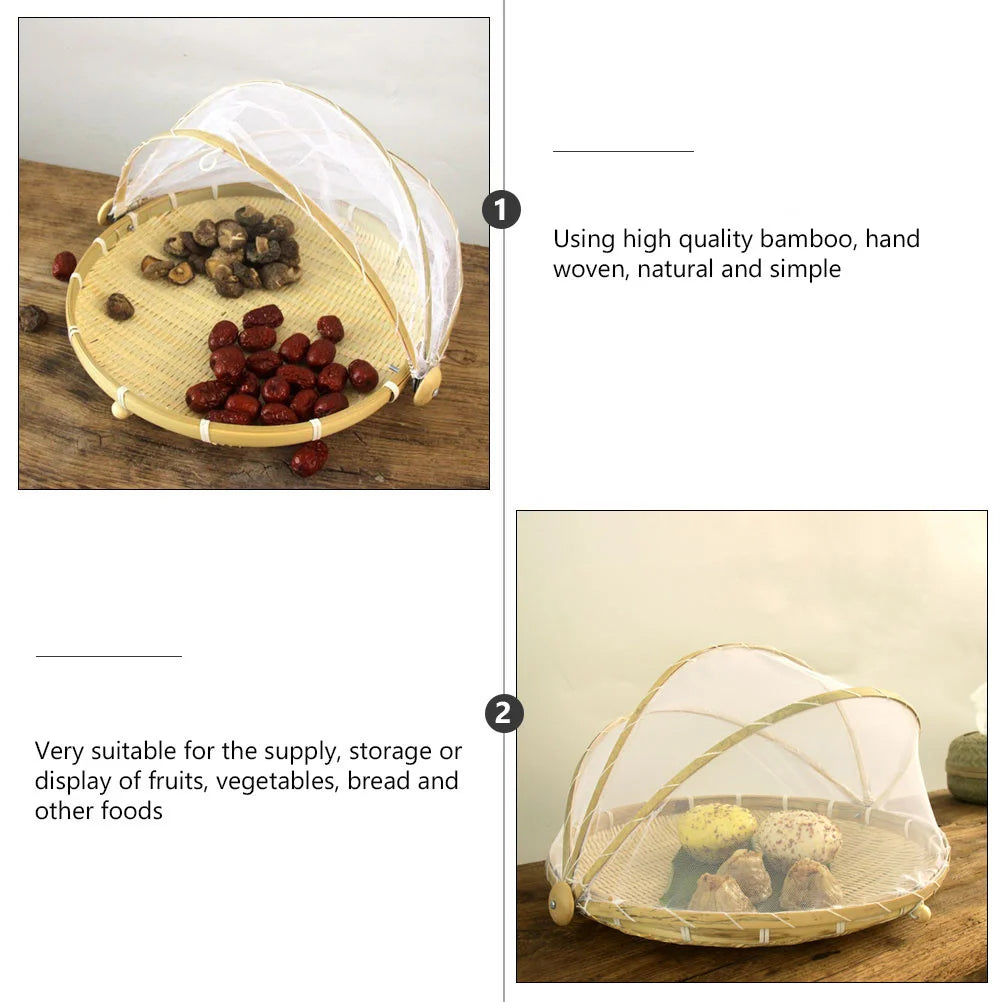 Erleben Sie mit diesem handgewebten runden Bambuskorb eine natürliche und stilvolle Möglichkeit, Lebensmittel und Obst hygienisch aufzubewahren. Das abdeckbare Netz hält unerwünschte Insekten fern, ideal für Küche und Picknick. Dieses Produkt besticht durch sein Design aus China.