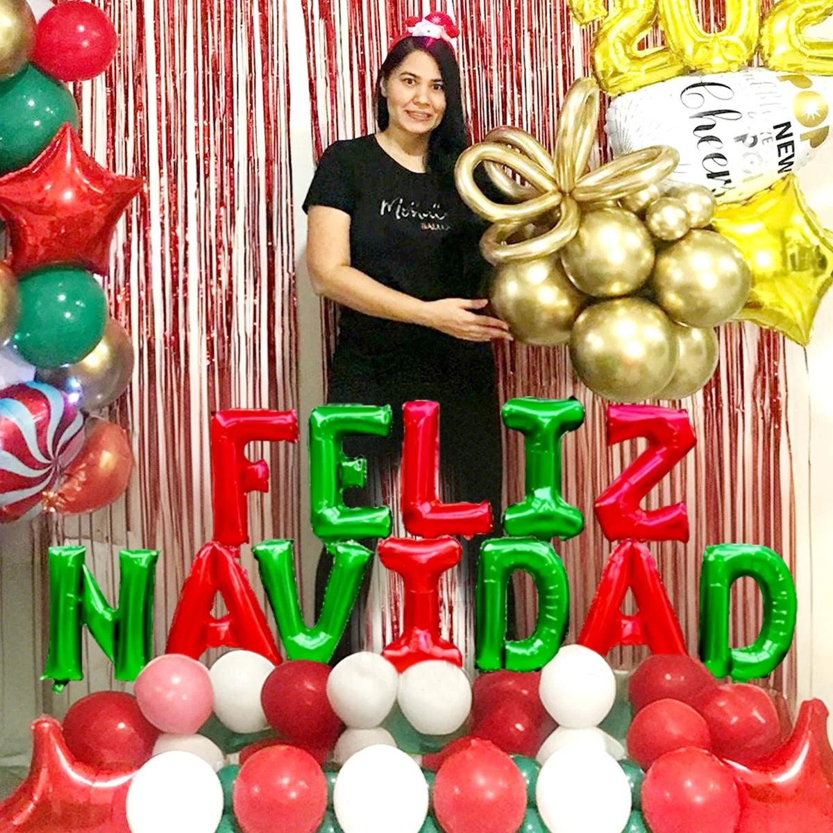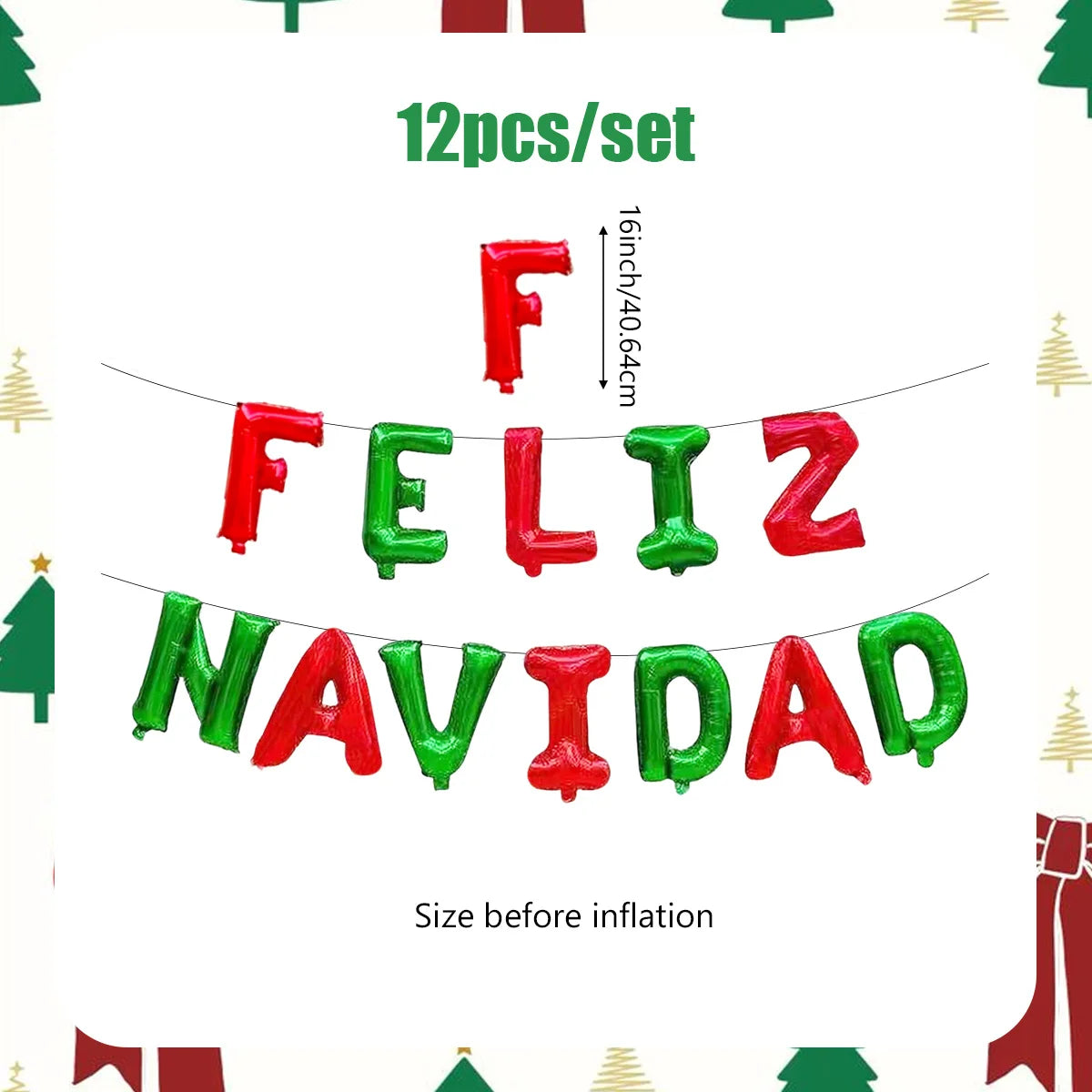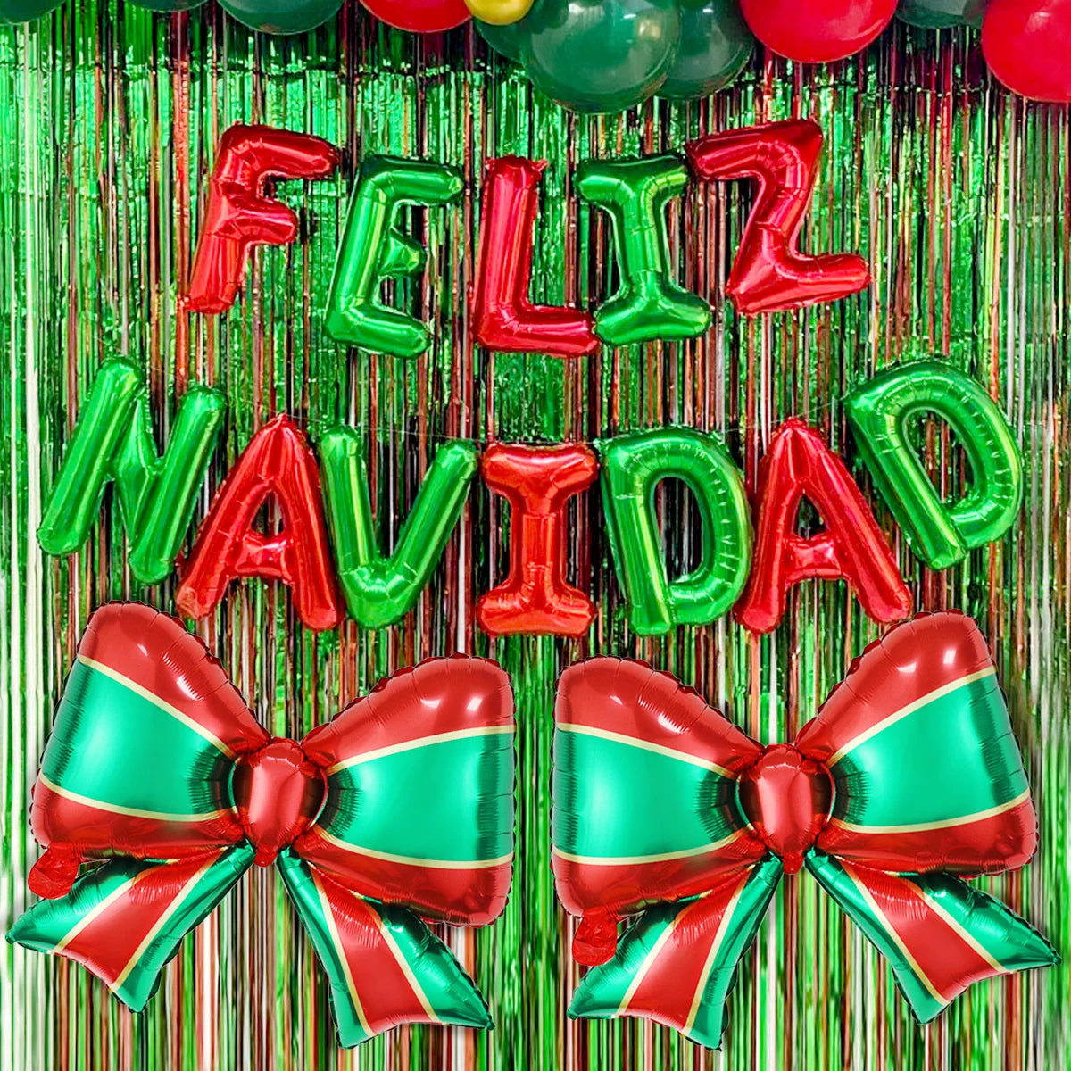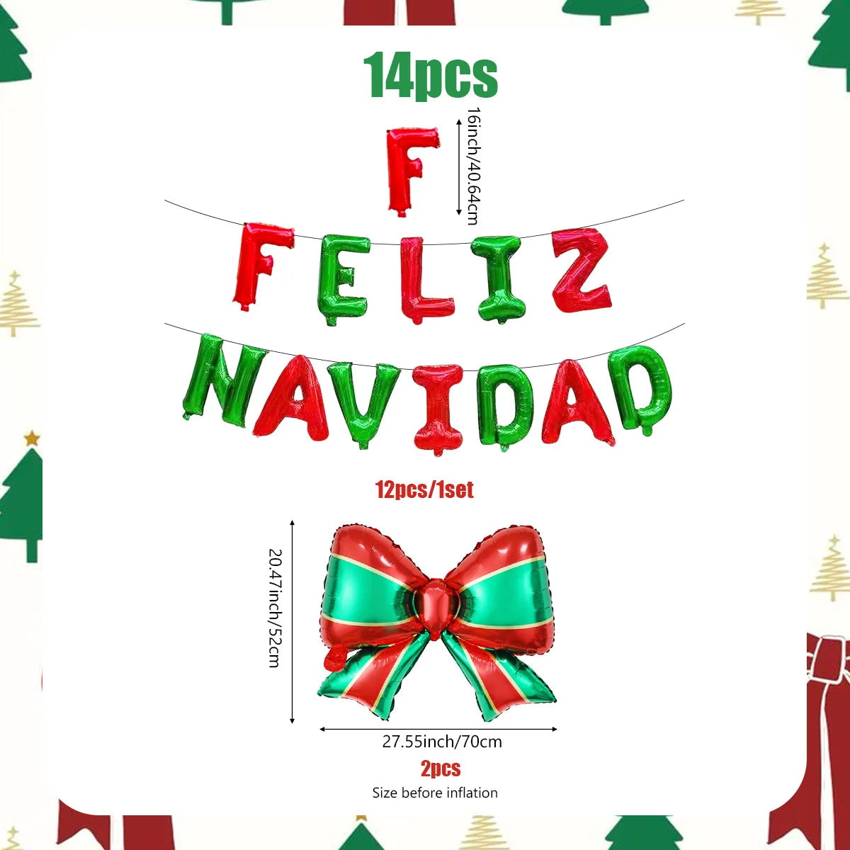 Dieses Set beinhaltet 2, 12 oder 14 Teile, inklusive roter und grüner Schleifenballons sowie einem spanischen Merry Christmas Schriftzug. Ideal geeignet für die Dekoration von Weihnachtsfeiern und festlichen Anlässen.