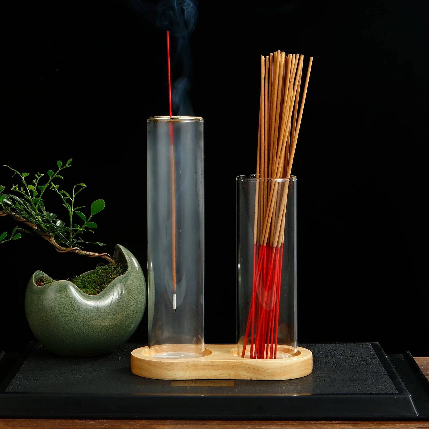 2 in 1 Räucherstäbchenhalter aus Glas mit Organizer und Aschefänger