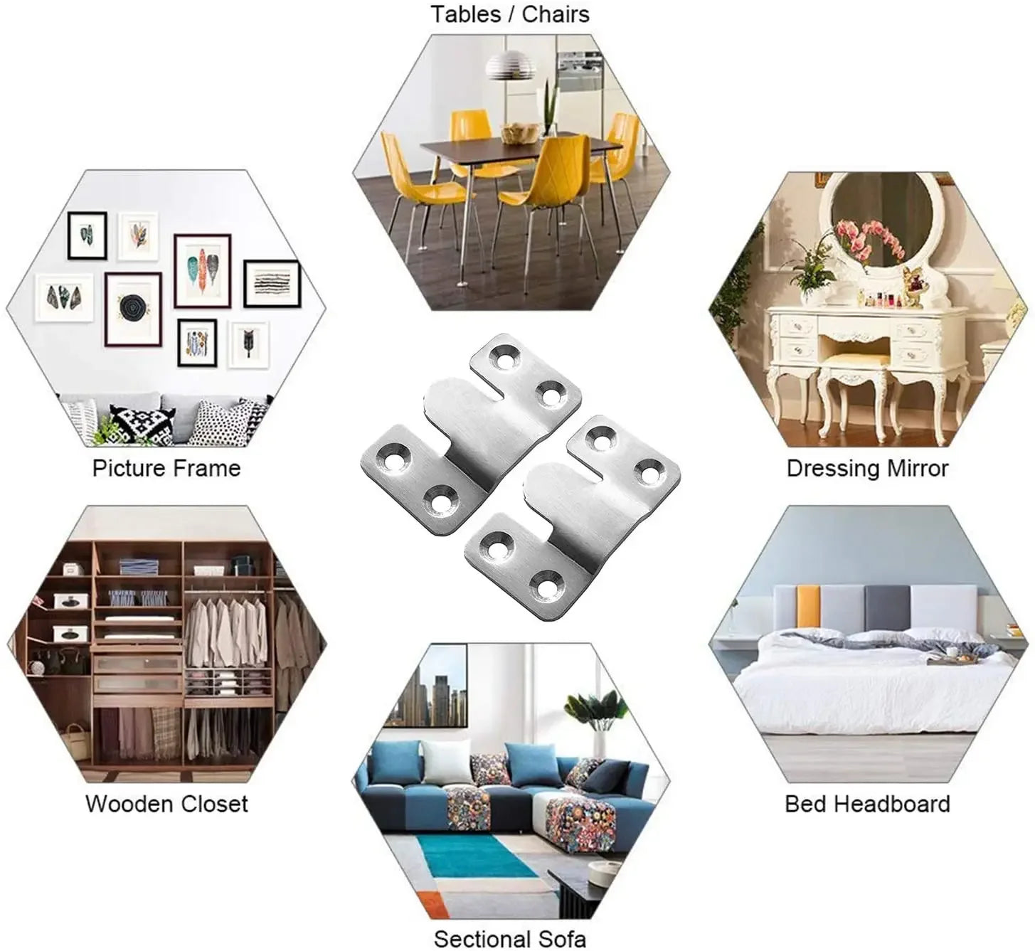 Dieses 2-teilige Set aus hochwertigen Edelstahlverbindern sichert Ihre Sofateile zuverlässig und verhindert Verrutschen. Die Halterungen sind vielseitig einsetzbar, ideal zur Verbindung von Modulsesseln sowie zum Aufhängen von Bildern, Spiegeln und Rahmen.