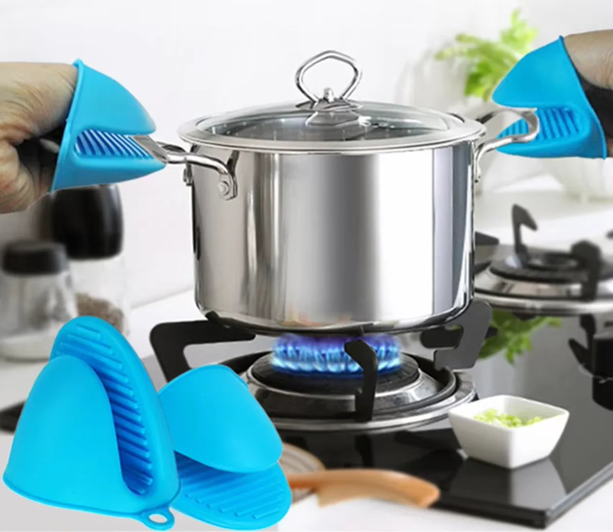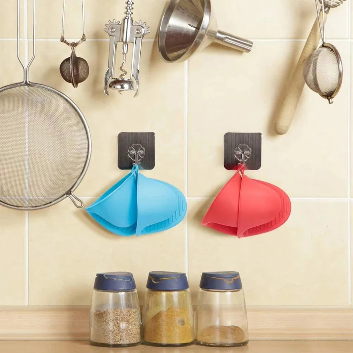 2er Set dicke Silikon Ofenhandschuhe mit Anti-Rutsch Topfclips Küche