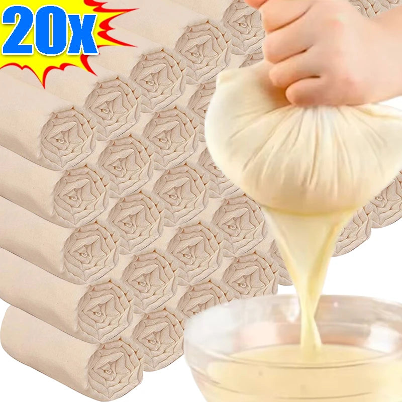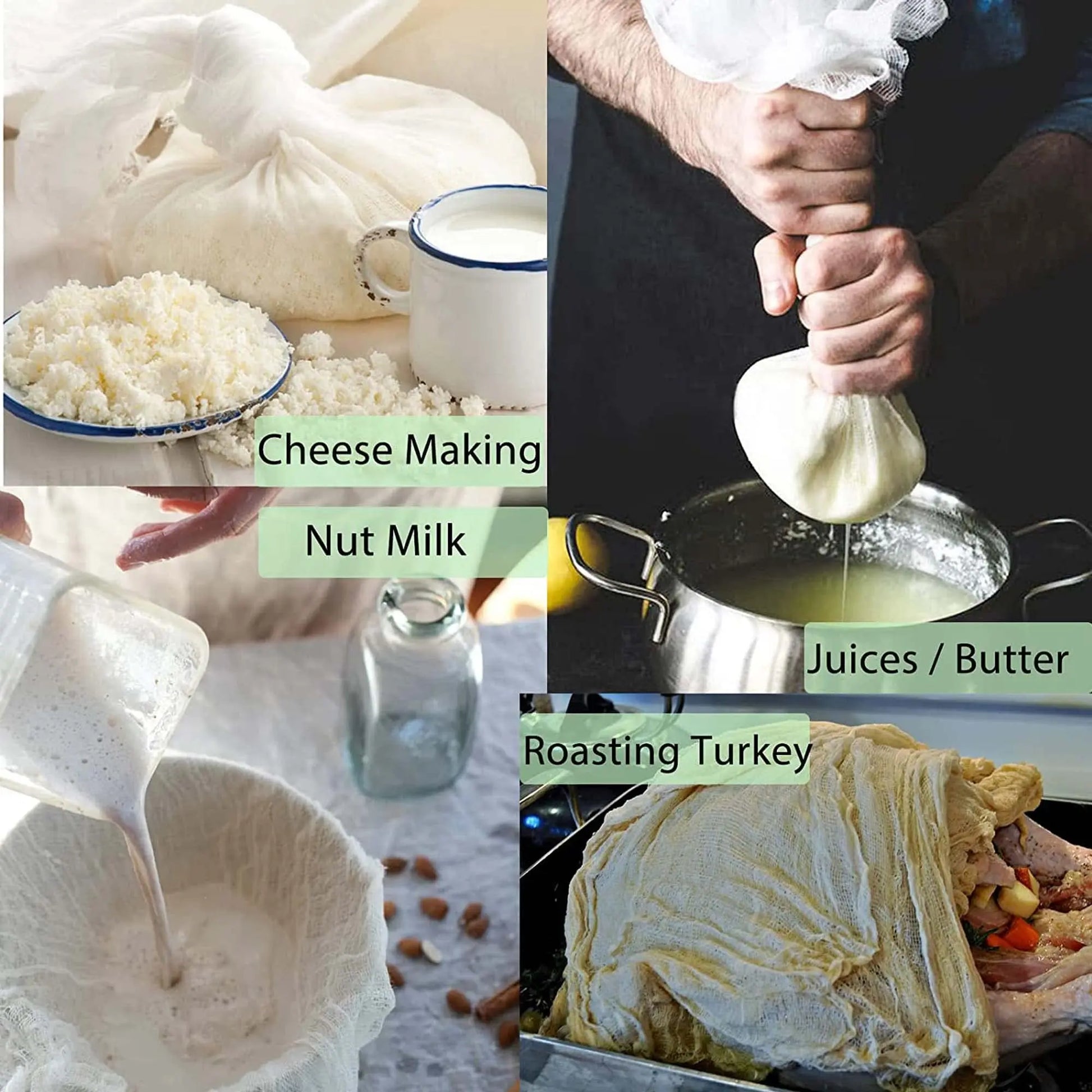Hergestellt aus feiner Baumwollfaser, bietet unser Mesh-Siebtuch eine hervorragende Filterleistung. Es ist ideal zum Abseihen von Flüssigkeiten, zum Pressen von selbstgemachtem Käse und Tofu, zum Filtrieren von Säften, Brühen oder zum Entfernen von Sedimenten beim Bierbrauen und Fermentieren. Die feine Maschenstruktur gewährleistet, dass selbst kleinste Partikel effektiv zurückgehalten werden, während die gewünschte Flüssigkeit makellos hindurchfließt.
