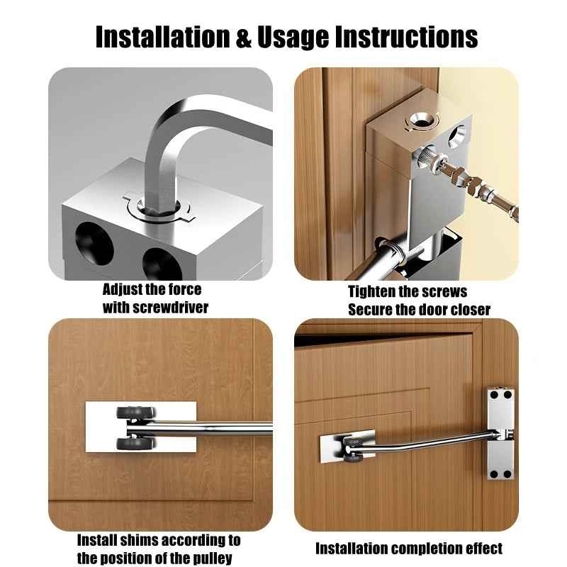 Dieser langlebige Türschließer aus Edelstahl eignet sich für Möbeltüren mit einem Gewicht zwischen 20 und 40 Kilogramm. Er bietet eine automatische Schließfunktion mit einem Öffnungswinkel von 180 Grad und eine verstellbare Oberfläche für eine optimale Anpassung.