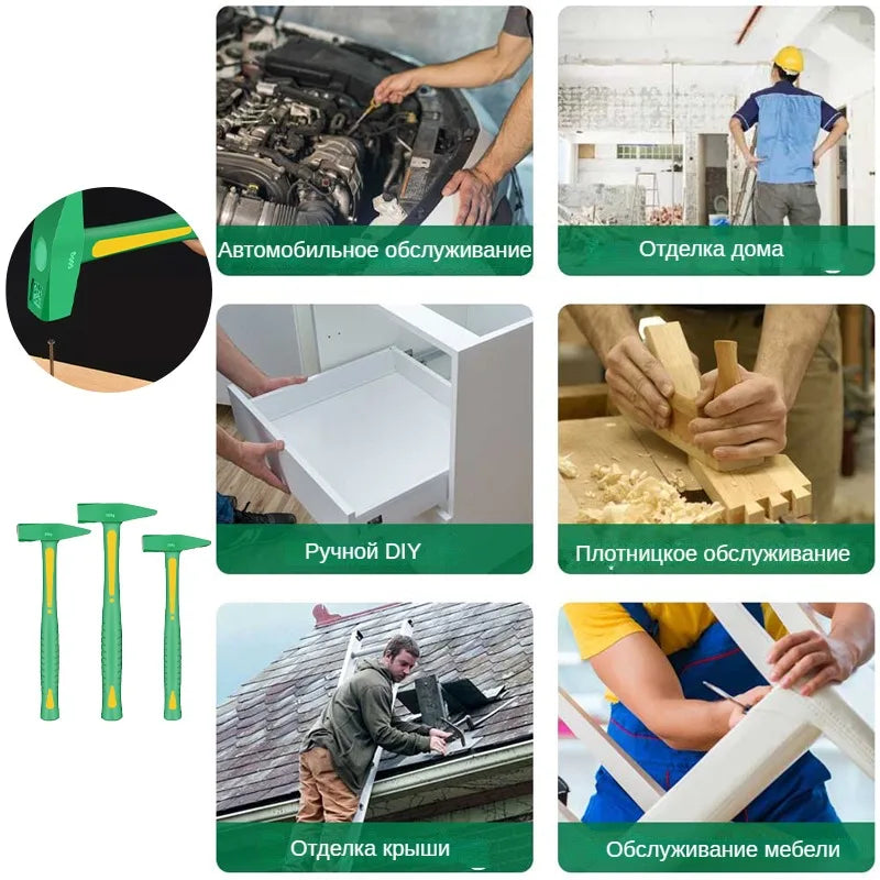 Stoßfester Flachkopfhammer mit Gummigriff 200/300g für Handwerk