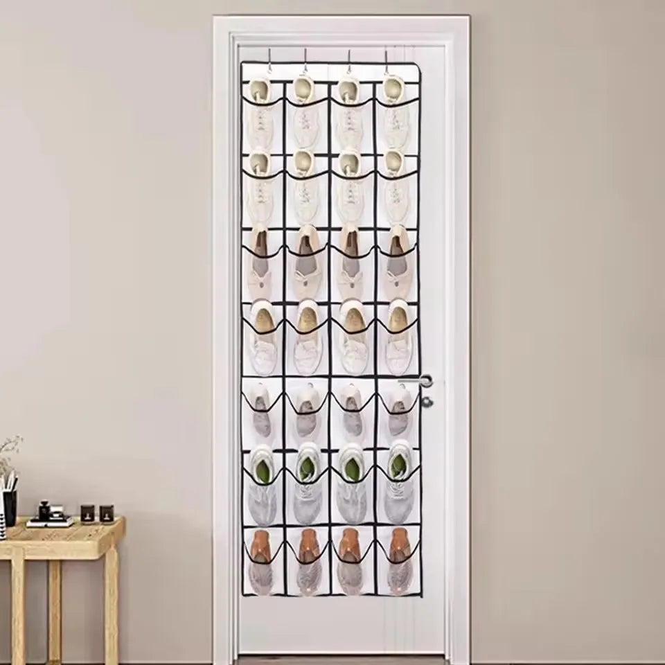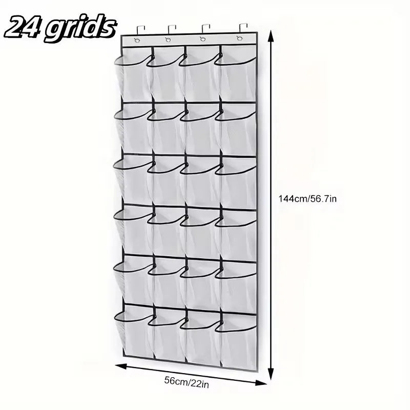 Dieser transparente Schuh-Organizer mit 24 Fächern eignet sich ideal zur Aufbewahrung von Schuhen und Kleinigkeiten. Hergestellt aus robustem, nichtgewebtem Stoff, lässt er sich einfach an der Wand oder über der Tür aufhängen und sorgt für Ordnung im Kleiderschrank oder Flur.