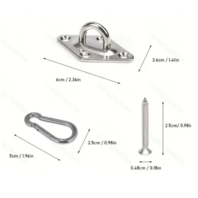 Diese starken Haken aus Edelstahl sind ideal für die sichere Befestigung von Schaukelstühlen und anderen Hängemöbeln an Wand oder Decke. Die integrierte Ösenplatte gewährleistet eine stabile und zuverlässige Installation, die den Anforderungen von Outdoor- und Innenbereichen gerecht wird.