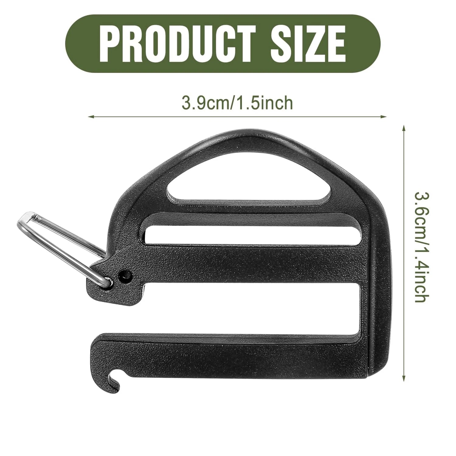 Dieses Set enthält 3 bis 12 Stück G-Haken aus Kunststoff mit 25 mm Breite. Die Clips eignen sich als Ersatz für Rucksack-Taschengurte und sind ideal für Outdoor-Ausrüstung. Einfach zu montieren und robust im Einsatz.