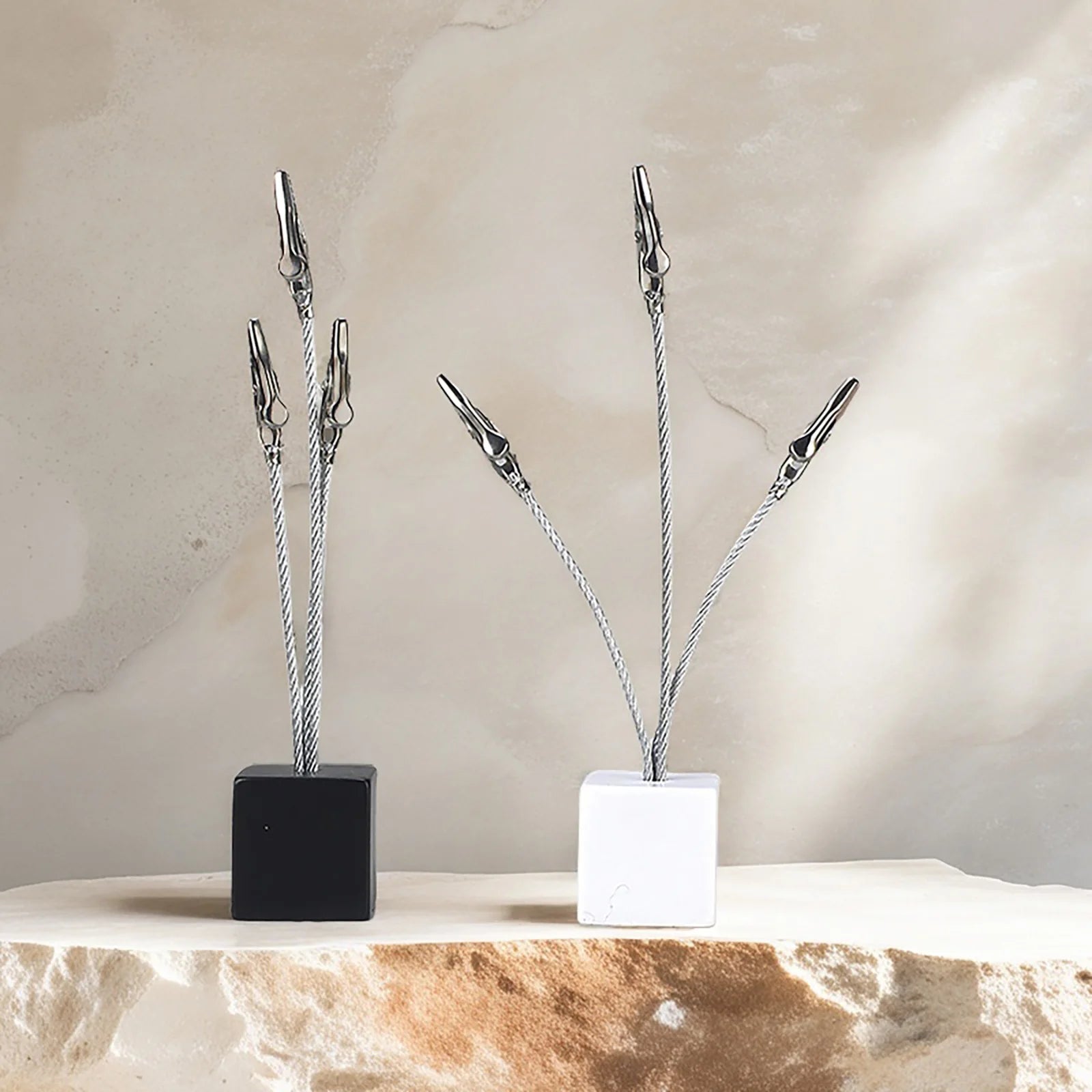 Dieser 3-Draht Memo Clip im Würfel-Design ist ein vielseitiger Notizkartenhalter für den Schreibtisch, ideal zur Befestigung von Fotos, Notizen oder Geschäftskarten. Gefertigt aus robustem Resin mit Metallclip bietet er zuverlässigen Halt und eine ansprechende Optik.
