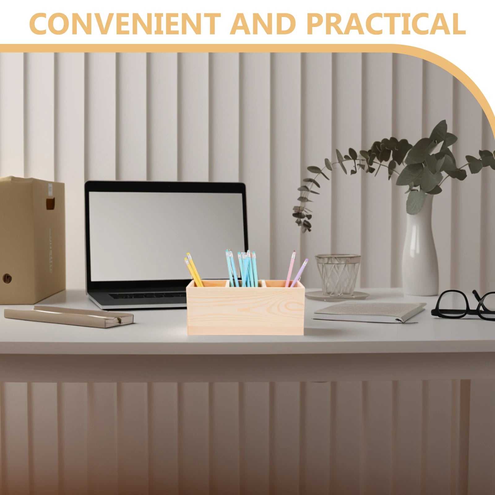 Praktischer 3 Gitter Bleistifthalter aus Holz für Schreibtisch